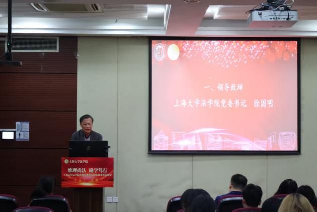 会议伊始,法学院党委书记徐国明代表法学院党政领导班子对获得荣誉的学生和集体表示祝贺,对会议筹备人员以及上海黄金交易所的大力支持表示感谢,并对校学工办和党委研工部一直以来对法学院人才培养工作的大力支持和指导表示感谢。徐书记与同学们分享了钱伟长教育思想中培养全面发展的人、拆除“四堵墙”、推进“三制”三个方面的具体内容,鼓励同学们争先创优,培养成德智体美劳全面发展的社会主义建设者和接班人,努力成为具有宽广国际视野、扎实专业知识、卓越实践能力的复合型法律高级人才。