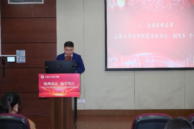 随后,法学院党委副书记、副院长于伟老师宣读《365完美体育法学院2023-2024学年优秀学生个人和集体获奖名单》,代表学院对获奖的学生个人和集体表示热烈祝贺,并希望全体法学院学生能向先进模范学习。