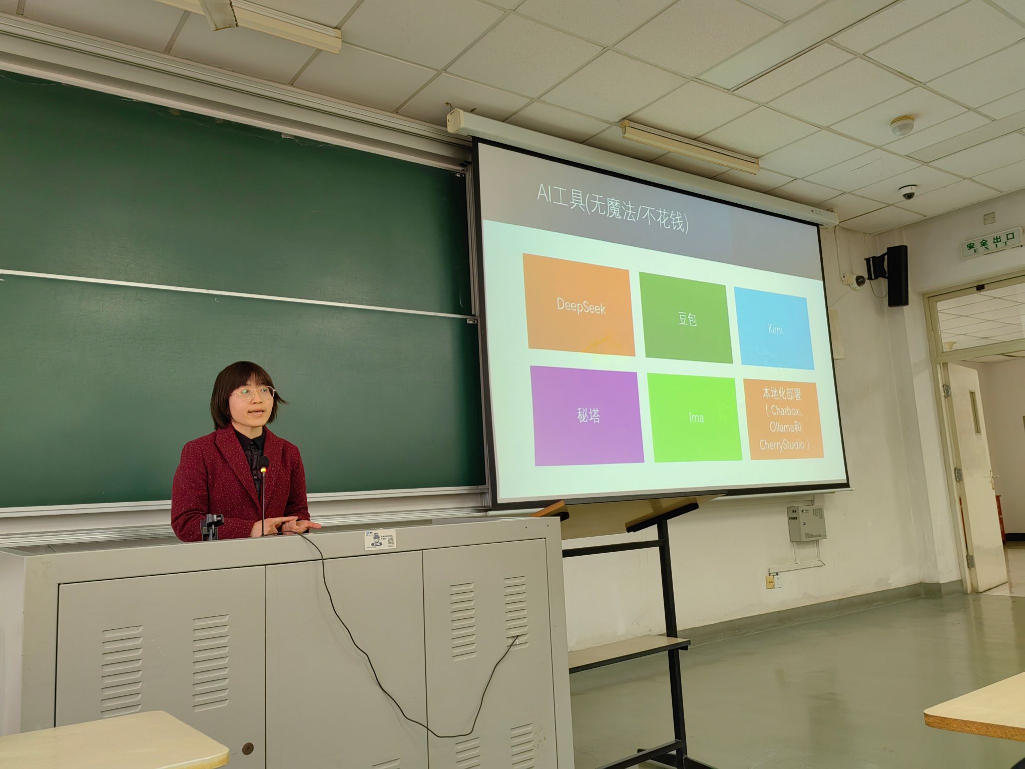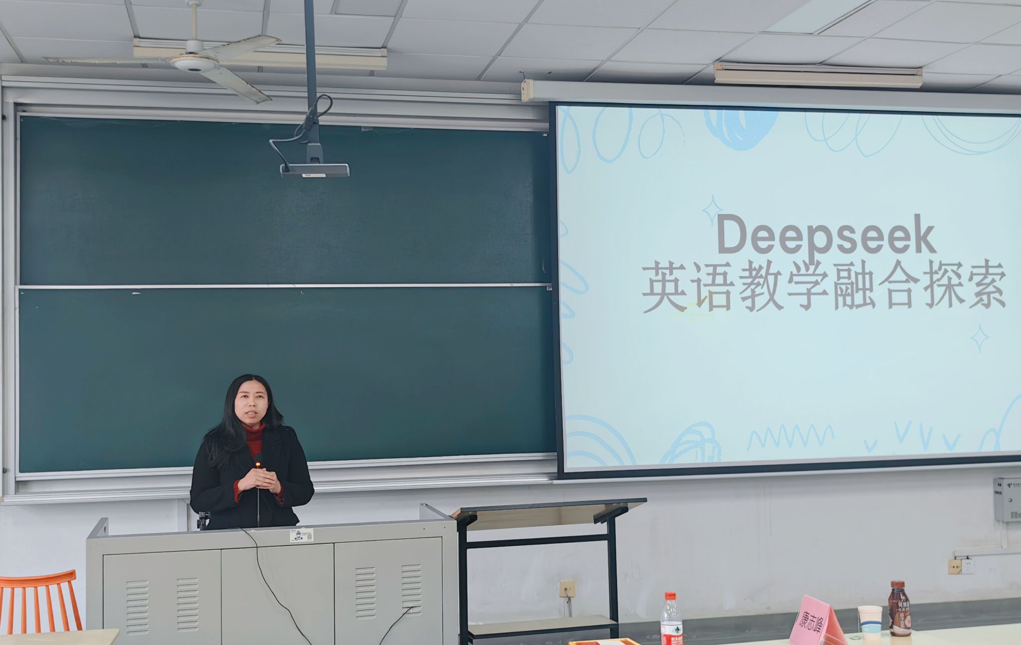 随后,王霞老师和张秀丽老师分享了 AI 赋能教学的实战经验。王霞老师结合 Deepseek 在英语教学中的应用,剖析了传统课堂教学模式的短板,阐述了 AI 增强型教学模式的显著优势。张秀丽老师则从 AI 赋能外语教学的时代背景切入,深入探讨如何有效借助并运用AI工具满足学生的个性化、差异化学习需求。
