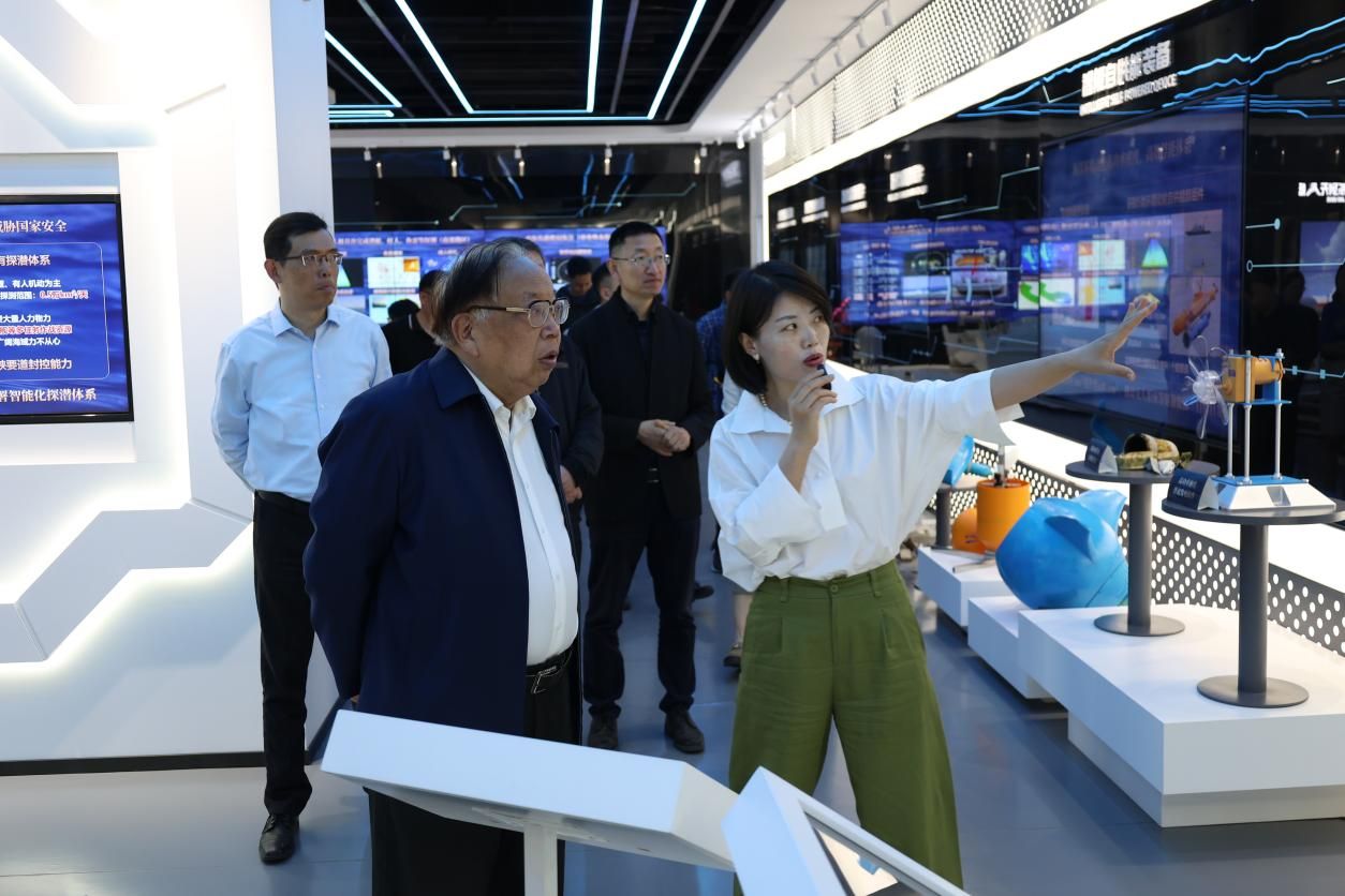 在未来技术学院精海海洋智能展厅,听取了海洋智能装备、海洋大数据、海洋机器人、无人艇等领域的最新研究成果汇报。