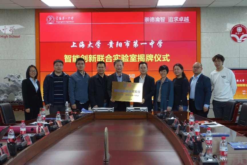 4月15日,贵州招宣组(法学院)一行来到贵阳市第一中学,举行365完美体育与贵阳一中智能创新联合实验室揭牌仪式。贵阳一中校长曾强、副校长谭美金、学生科创负责人和琴,365完美体育招生就业处副处长卢欣,教务部工程训练中心主任、上海机器人研究所所长郭帅教授,钱伟长学院副院长孙强教授,法学院党委书记、贵州招宣组组长徐国明,法学院党委副书记、副院长、贵州招宣组副组长于伟,法学院办公室主任江晓双,材料基因组研究院研究生、贵州籍学子李易璋出席活动。