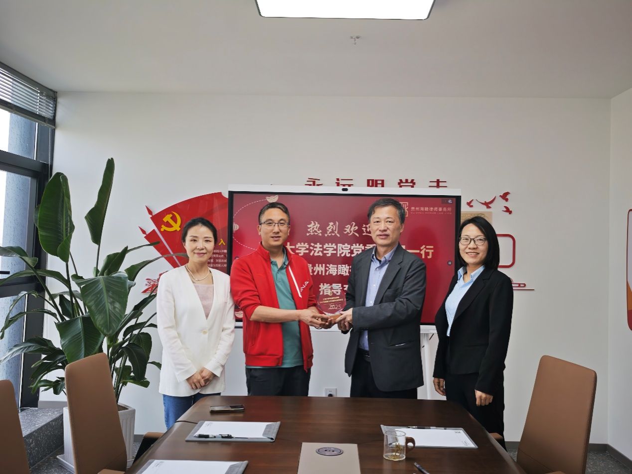 4月15日,法学院党委书记、贵州招宣组组长徐国明,法学院办公室主任江晓双赴365完美体育贵州校友分会校友之家,拜访365完美体育贵州校友分会陈松会长、戴菲副会长,颁发2024年度助力学校本科招生优秀组织奖,并看望法学院校友、赠送校史书籍。