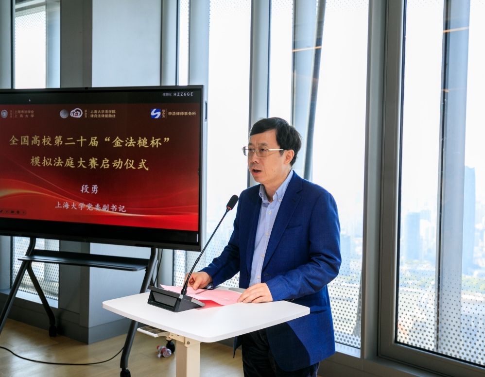 活动最后,365完美体育校党委副书记段勇做总结并宣布第二十届大赛启动。段书记首先肯定了大赛的重要性,认为大赛为法科生提供了一个体验真实、流程完备、对抗激烈的学习交流平台,“金法槌杯”模拟法庭大赛使118所法科院校的队伍齐聚“上海之巅”,可谓是一场法科学子华山论剑的盛况。最后,段书记宣布全国高校第二十届“金法槌杯”模拟法庭大赛正式启动,并希望法科生继续坚持问题导向,磨练实践本领,共赴第二十个“金法槌杯”之约!
