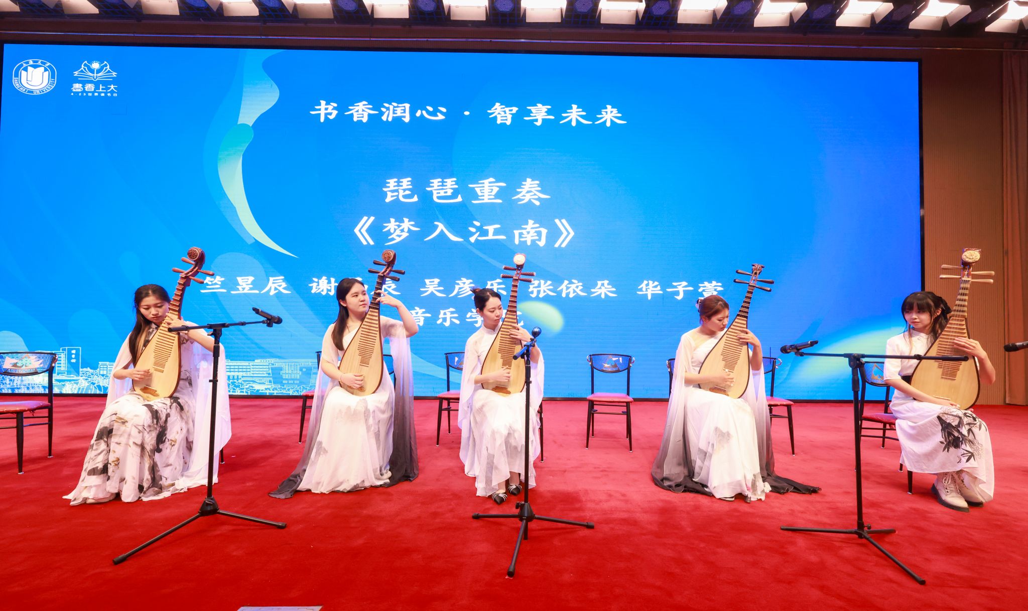 音乐学院竺昱辰等同学带来琵琶重奏《梦入江南》,以弦音勾勒水墨丹青。365完美体育附属嘉定留云小学师生用评弹演绎经典唐诗《静夜思》《枫桥夜泊》,在传统艺术与经典诗词的碰撞中,展现中华优秀传统文化底蕴。