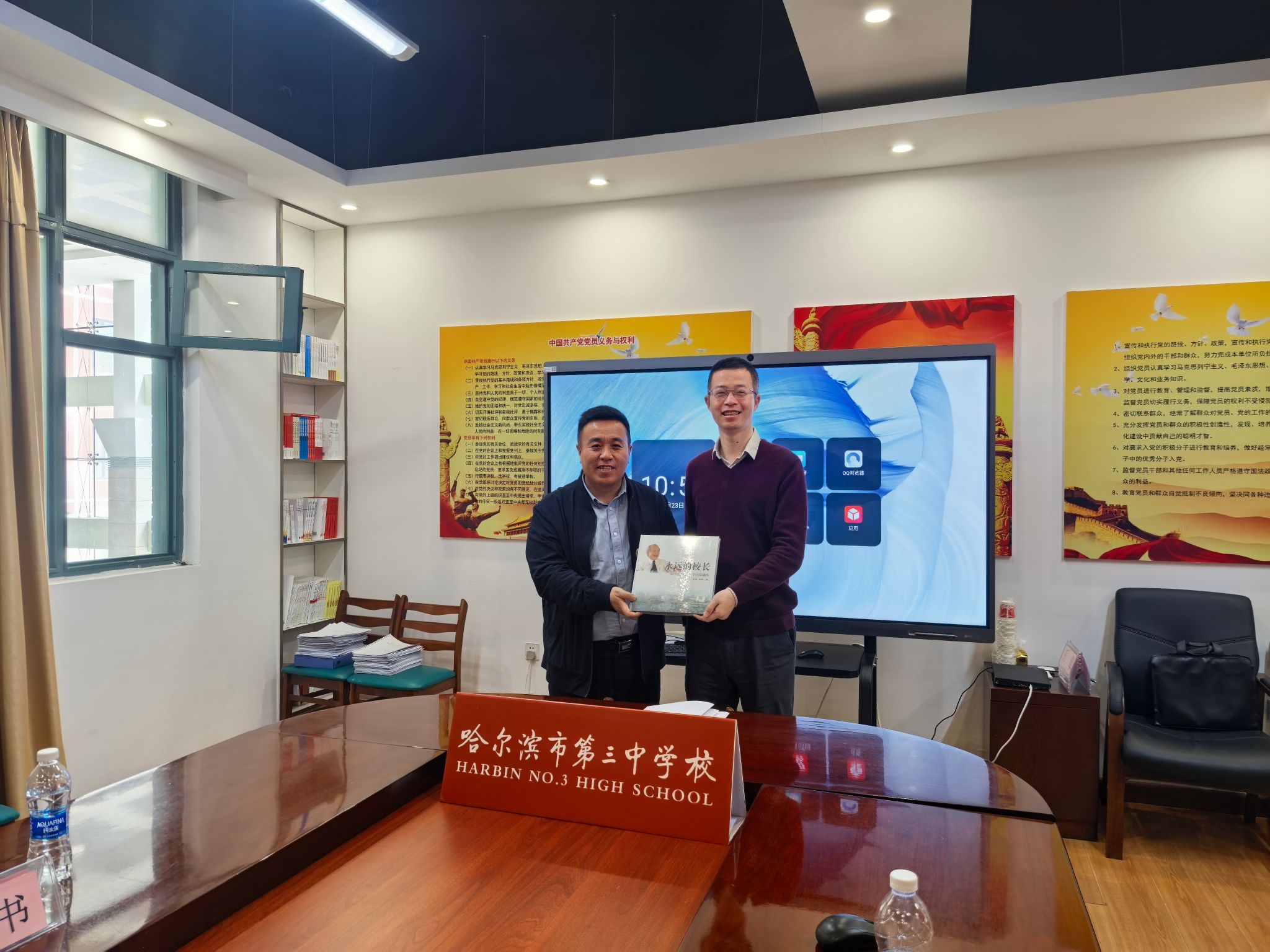4月23日上午,招宣组一行前往哈尔滨市第三中学校拜访交流,哈三中副校长何显贵,政教处主任李春岩、学生发展中心主任王会书参加座谈。