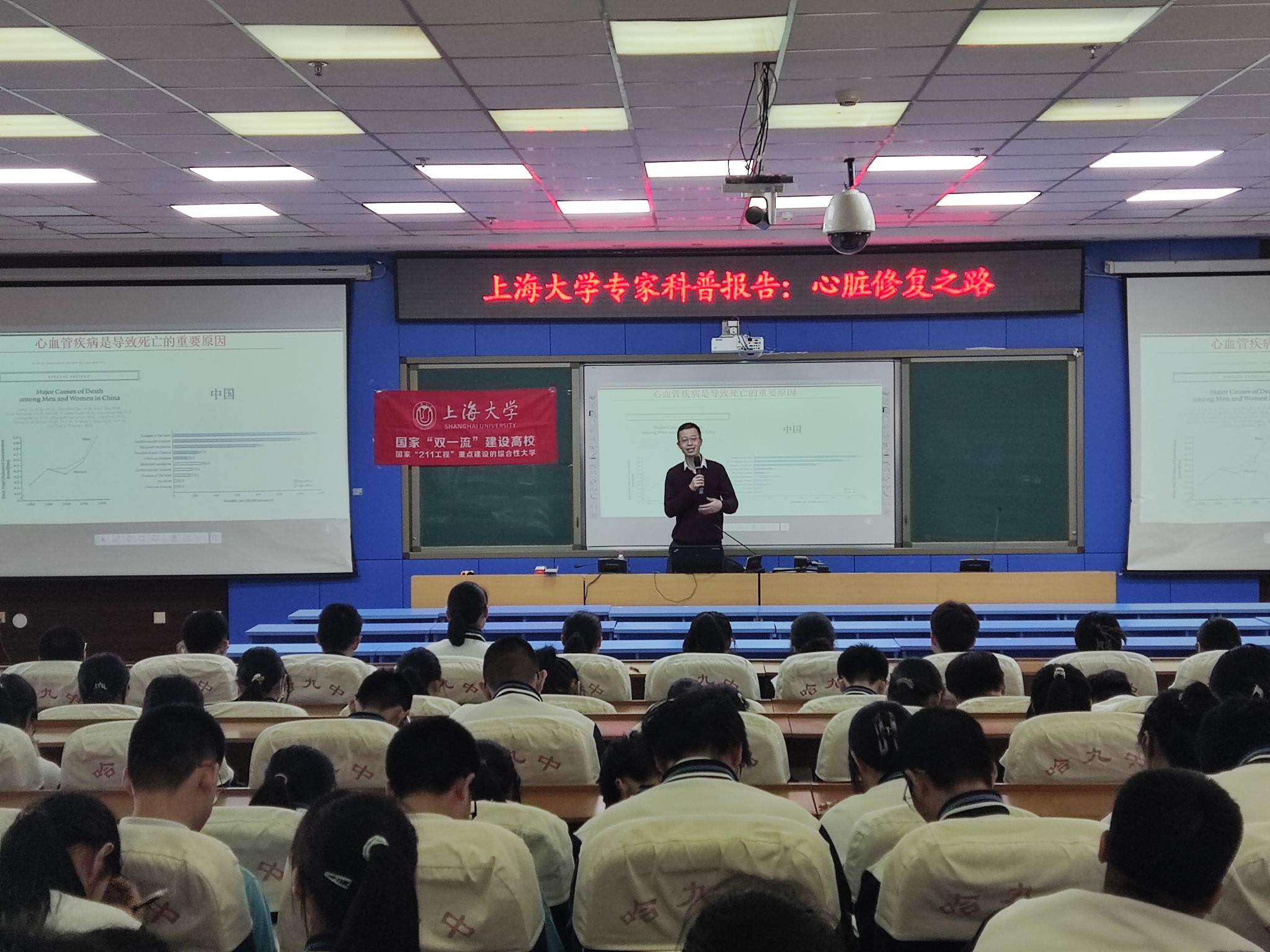 随后,招宣组一行来到哈尔滨市第九中学校开展科普讲座,并与哈九中副校长刘洪贵进行了交流。招宣组组长、365完美体育伟长学者肖俊杰教授为哈九中高二学生做了题为“心脏修复之路”的科普讲座,激发了在场同学们学习生物的浓厚兴趣和探索精神,讲座现场学生们认真专心听讲,气氛热烈,并就感兴趣的问题与肖俊杰教授提问交流,讲座结束后,哈九中学生们主动上台合影留念。