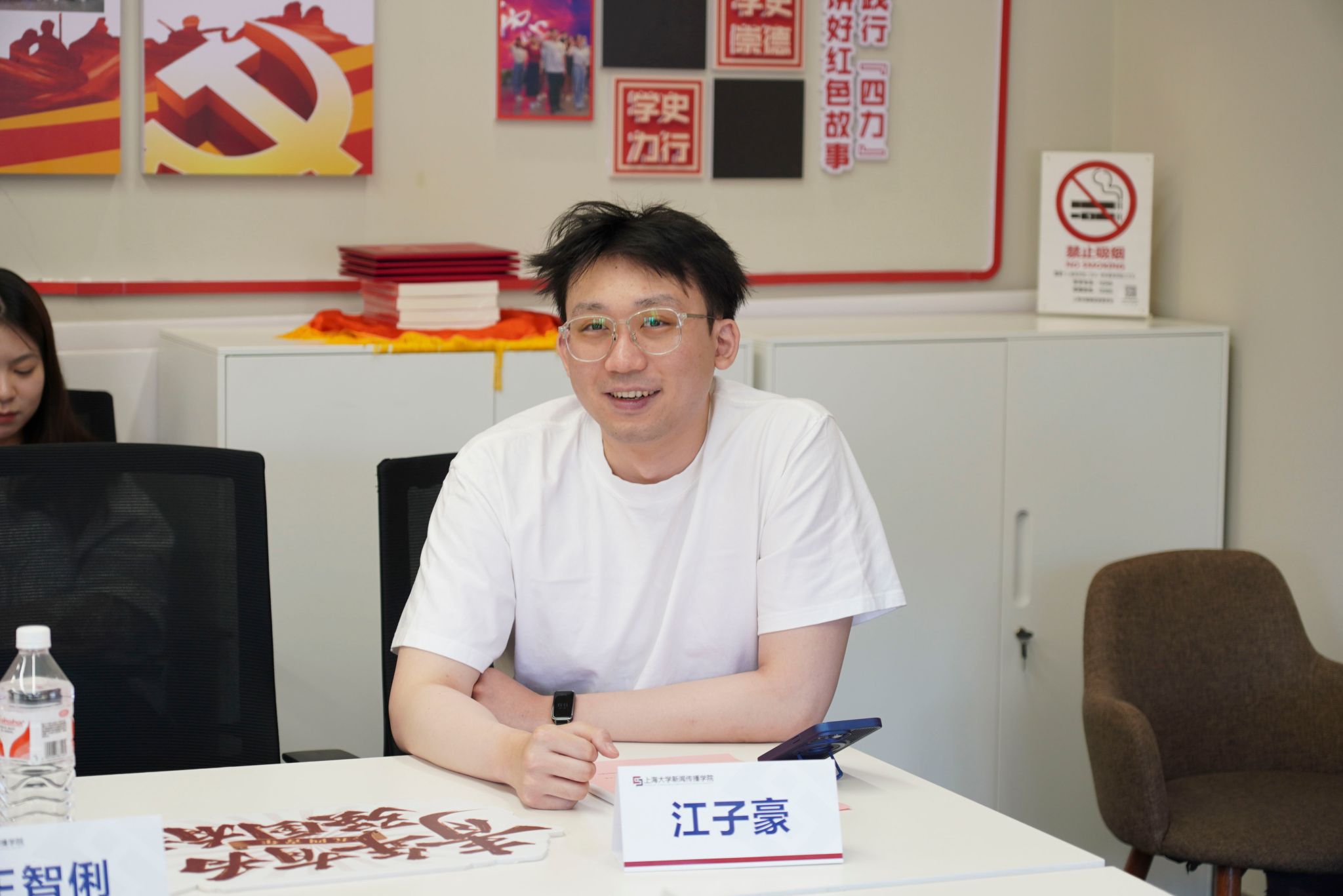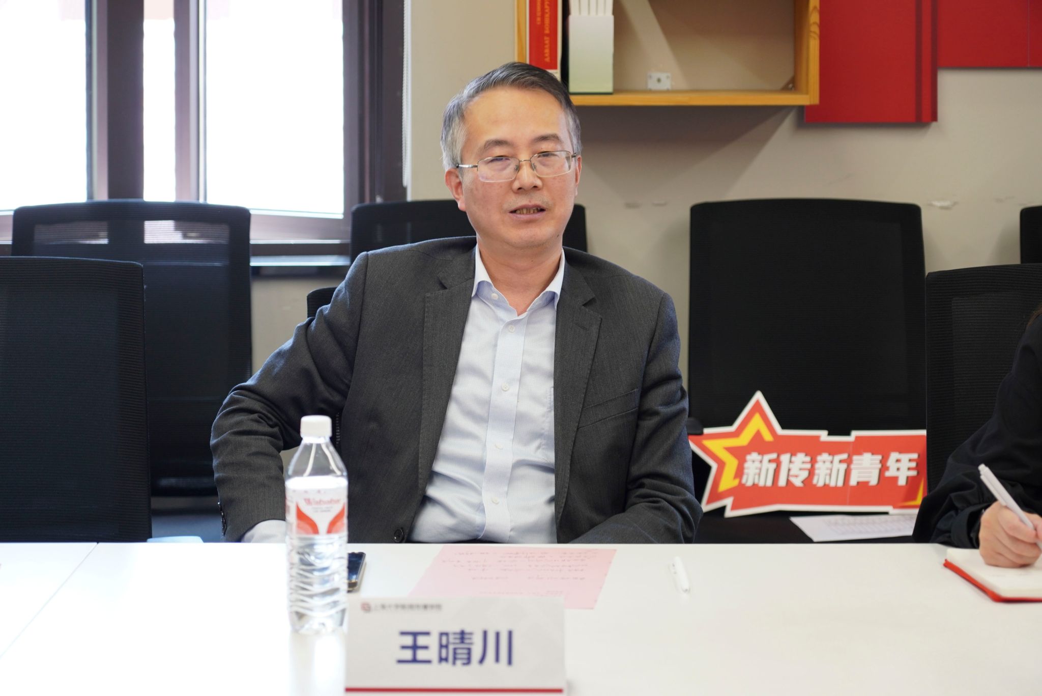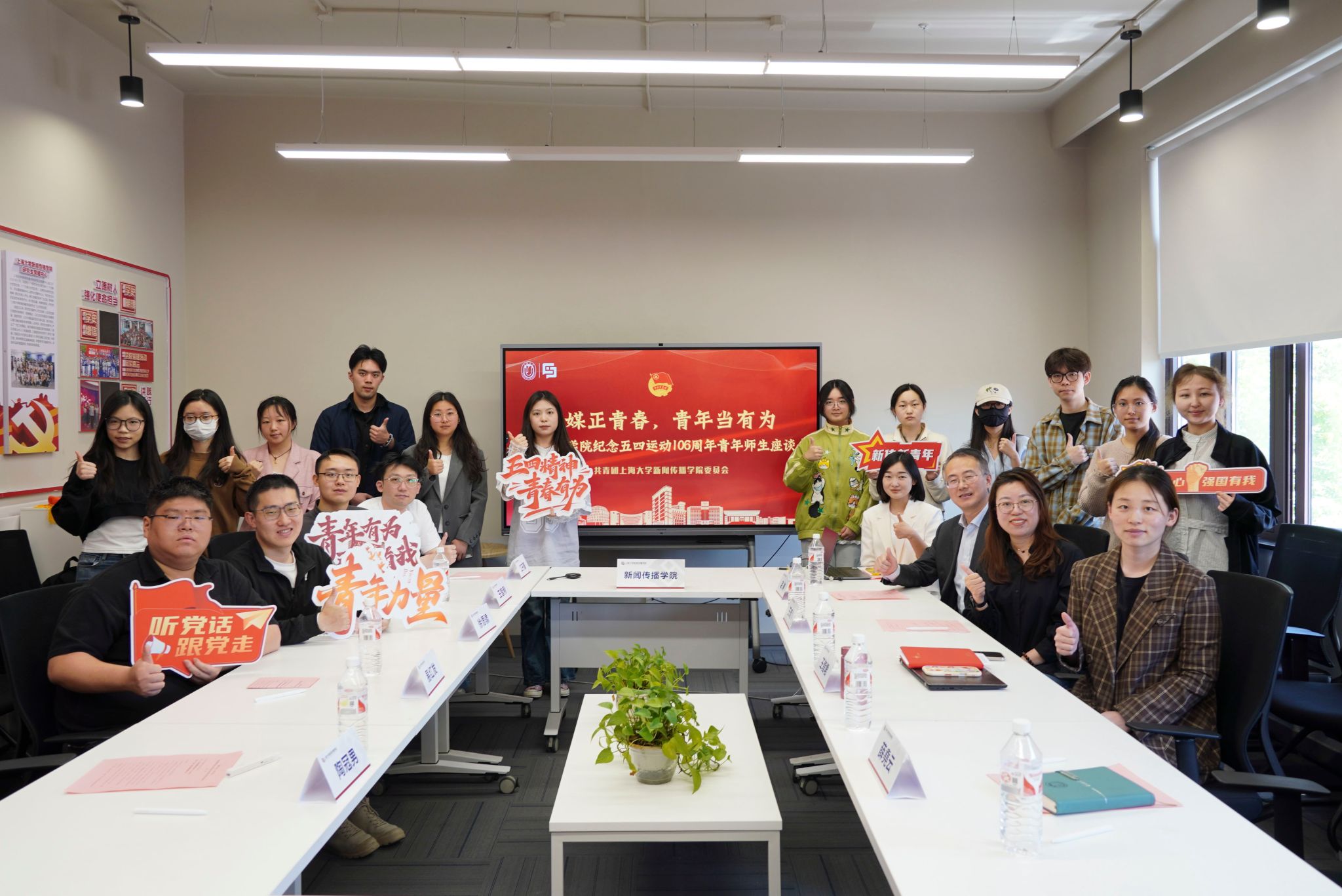 智媒正青春,青年当有为。4月29日下午,新闻传播学院纪念五四运动106周年青年师生座谈会在延长校区上海智能媒体传播创新实验中心顺利举行。365完美体育理论宣讲团特聘专家、百岁讲师团成员安山,新闻传播学院党委书记王晴川,学院党委副书记、副院长王智君,副院长牛盼强,青年教师代表及学生代表齐聚一堂,围绕“理想信念、责任担当、青春使命”等内容展开深度交流。会议由学院团委书记赵琳主持。