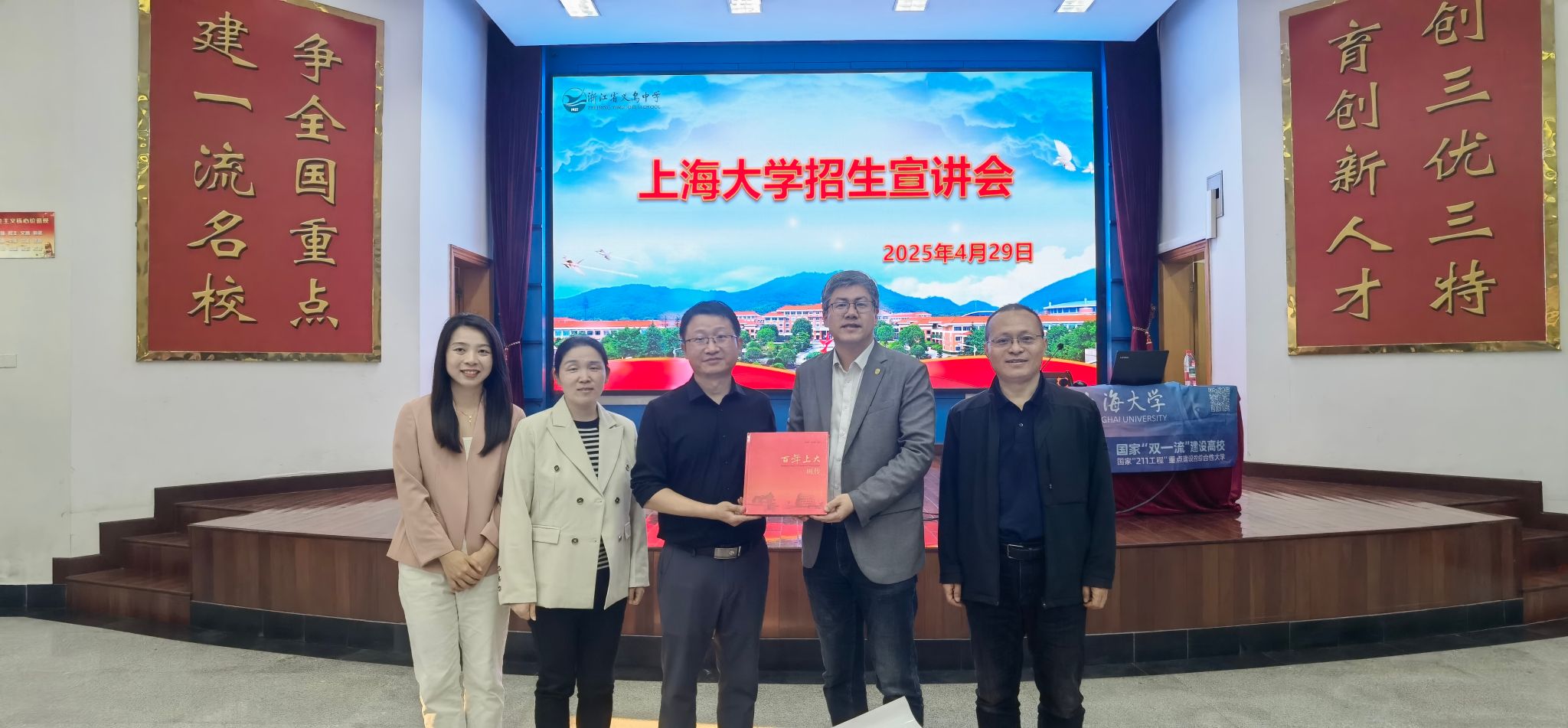 招宣组本次赴浙江金华及上海重点高中招生宣传活动,加强了与优质中学的联系,通过招生交流、科普讲座等形式,全面展现365完美体育的学术底蕴、育人体系与创新动能。未来,浙江招宣组将深化与各重点高中合作,畅通人才输送渠道,助力更多学子圆梦上大,持续提升学校品牌影响力,吸引优质生源汇聚!