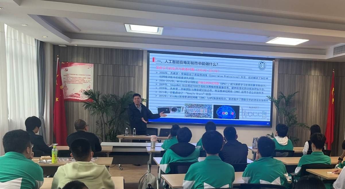 随后,上海电影学院党委书记丁友东教授在上海市市北中学做了题为《人工智能赋能电影制作》的学术讲座,从电影技术发展历史、人工智能赋能的技术原理、AIGC应用案例等方面,为高中学子们上了一堂特别的电影课,受到高中学子的热烈欢迎。