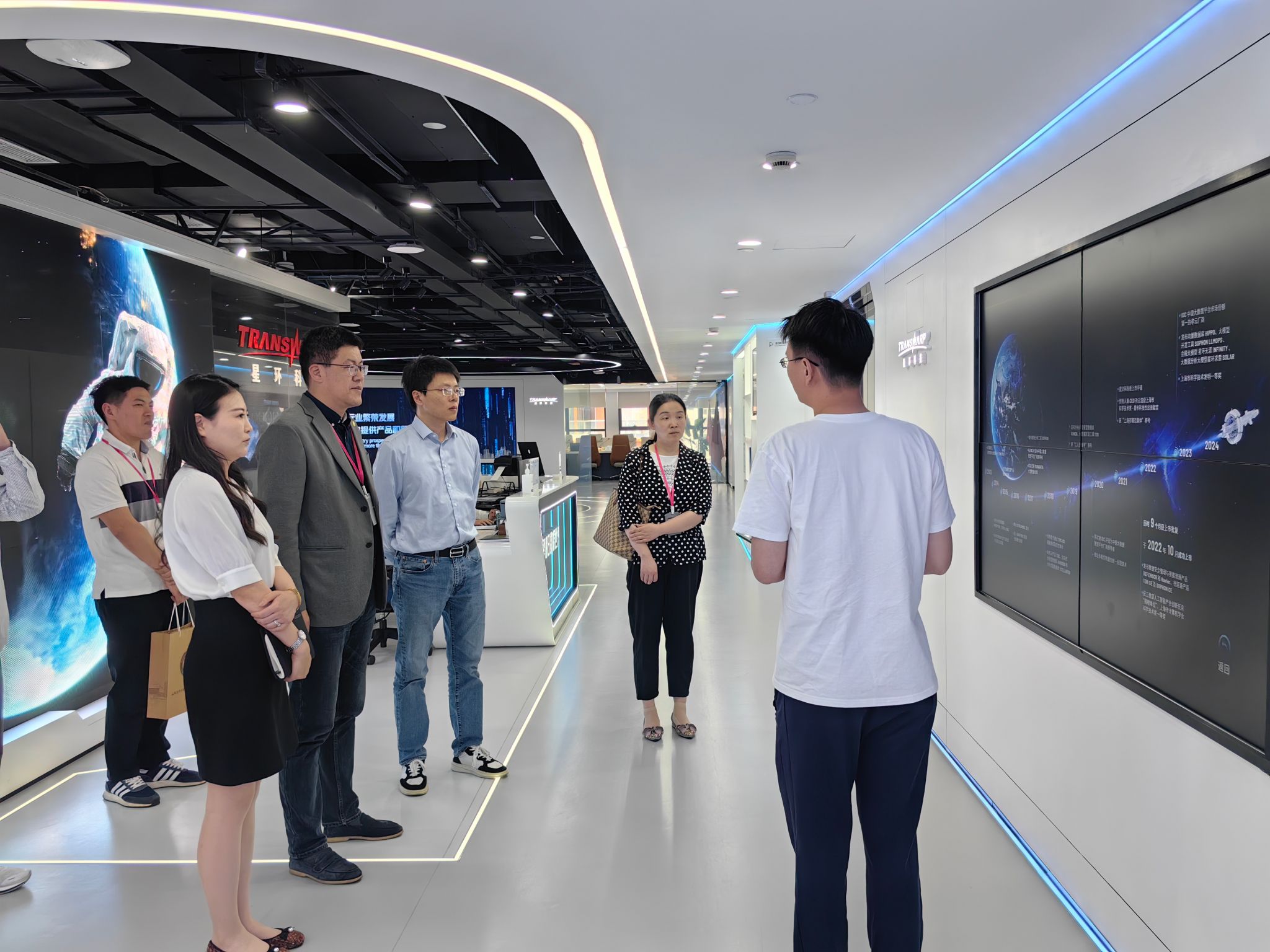 与会人员一同参观了星环信息科技展厅。展厅全方位呈现了星环科技在大数据、人工智能等数智领域的前沿技术与创新实践成果。从底层的数据存储、处理架构,到上层丰富多元的行业应用解决方案,每一项展示都彰显着星环科技在行业内的技术领先地位与深厚研发实力,让与会人员对行业发展的现状与趋势有了更为直观且深入的认知,为后续交流提供了坚实的现实依据。
