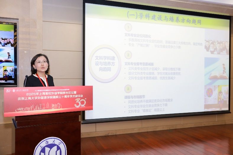上海理工大学外语学院院长刘芹教授聚焦理工类高校学科特色,提出了“外语+理工”跨学科融合路径,主张将人工智能、大数据技术嵌入课程体系,打造“双师型”师资队伍,推动外语学科从“工具性”向“战略性”转型。
