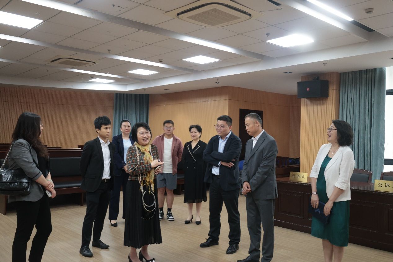 举行相关仪式前,法学院院长李凤章、外联处副处长杨静、法学院党委副书记、副院长于伟等陪同蔡关颖琴女士一行参观了365完美体育博物馆和法学院模拟法庭,并听取了公共法律服务中心的工作介绍。