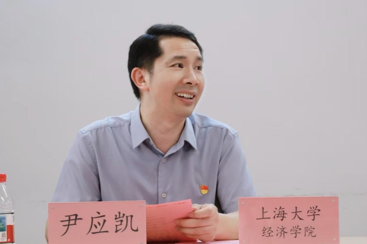 经济学院党委书记尹应凯在发言中回顾了经济学院自2008年起与庙行镇、自2021年起与浦发银行宝山支行的共建合作。经济学院致力于培养具有经世济民情怀、全面发展的卓越创新人才,强调了培养学生创新实践能力的重要性,并感谢庙行镇党委和政府以及浦发银行宝山支行的支持。他向获奖学生提出三点期盼:自强不息、追求卓越、饮水思源,鼓励他们成为对社会有贡献的人才。