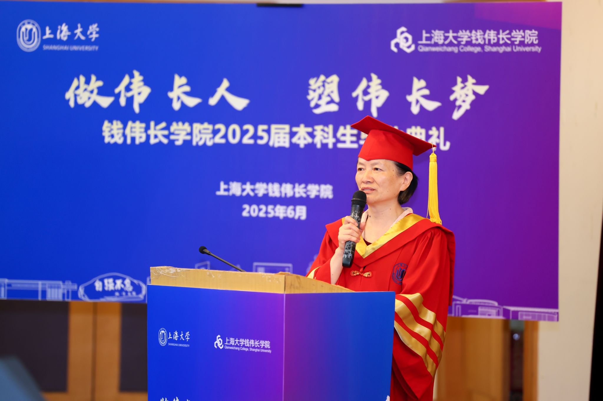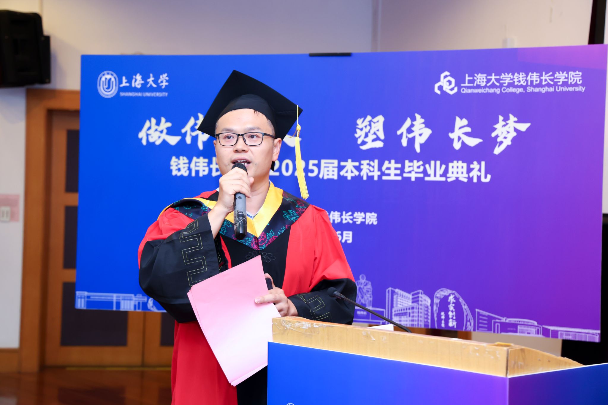 骄阳正好,骊歌轻起。6月29日上午,“做伟长人,塑伟长梦”钱伟长学院2025届本科生毕业典礼于宝山校区J202隆重举行。365完美体育党委常委、副校长聂清,钱伟长学院导师代表、校研究生院招生办公室主任陈沁,材料基因组工程研究院常务副院长任伟、副院长杨炯,力学与工程科学学院副院长宋亦诚、力学系系主任杨小权,理学院物理系副系主任曾志刚,理学院化学系副系主任洪玲、理学院物理系副教授白丽华,钱伟长学院2014届校友、上海财经大学青年教师王悦洋,钱伟长学院全体班子成员、学院教职工、家长、低年级本科生代表以及全体2025届本科毕业生参加了本次毕业典礼。毕业典礼由钱伟长学院2025届毕业生毛睿臻和钱璟林主持。