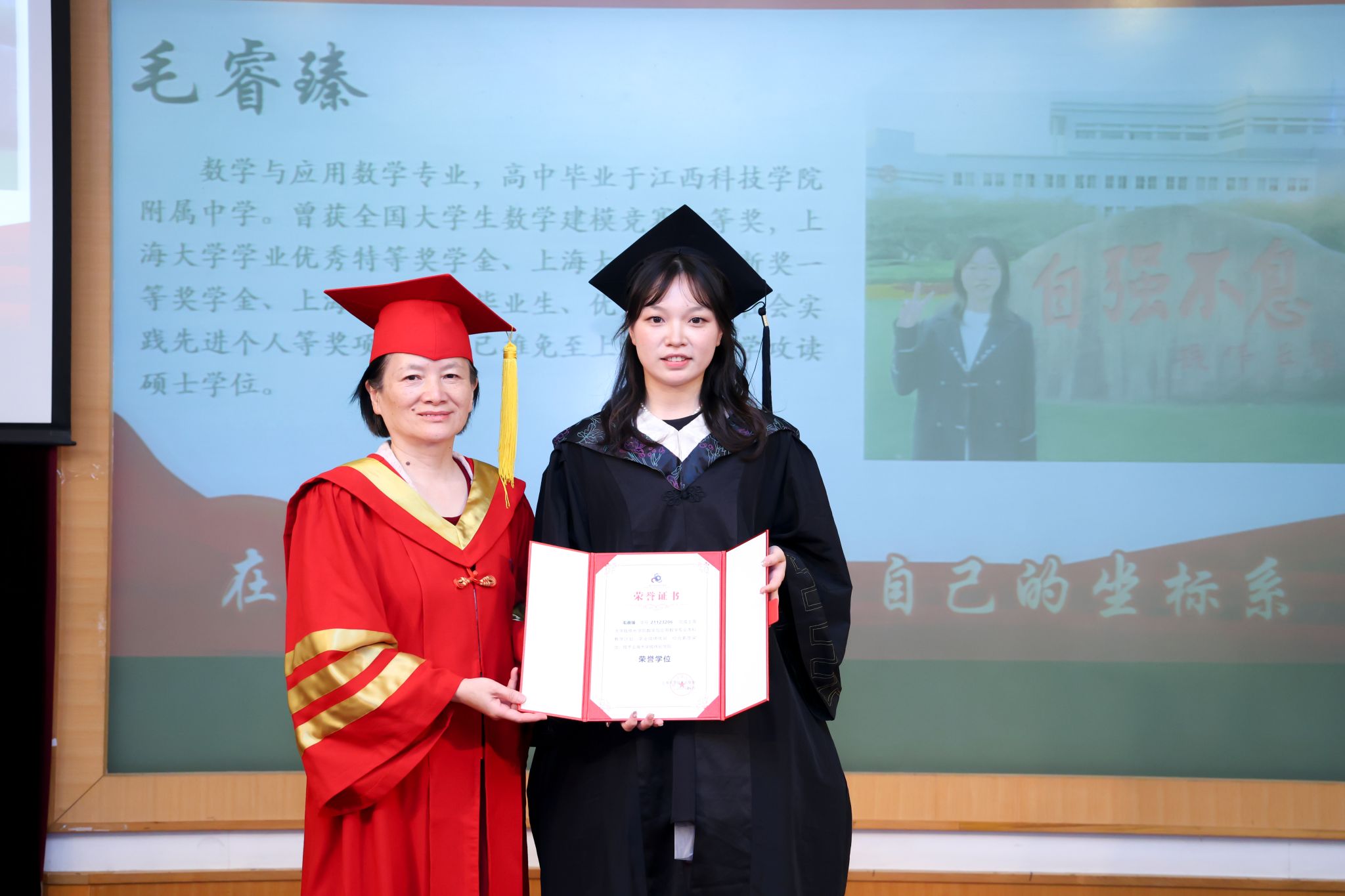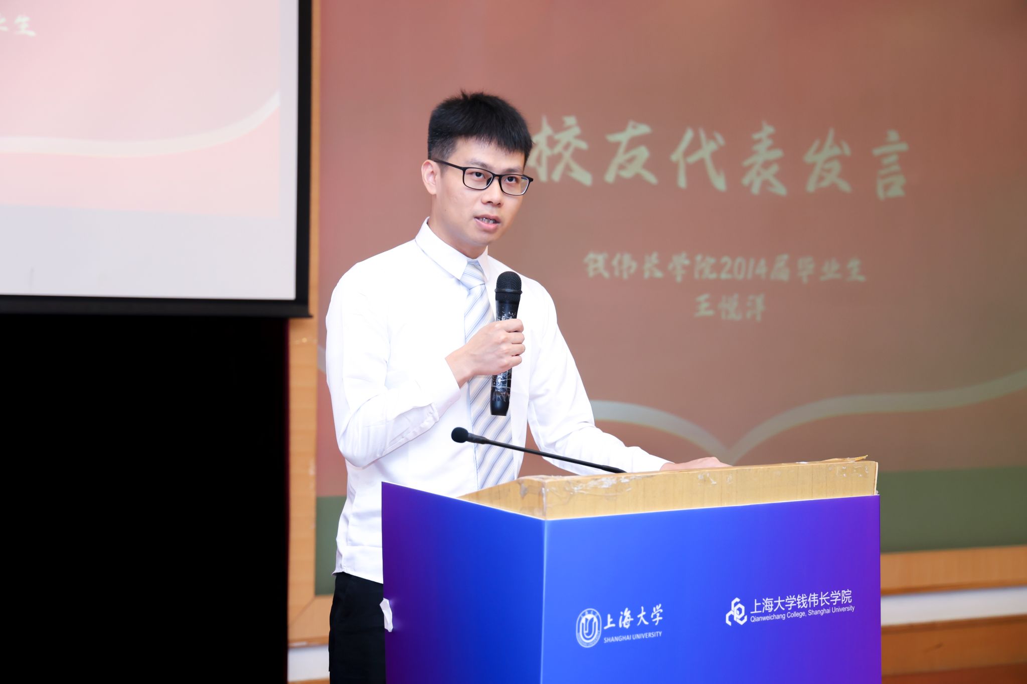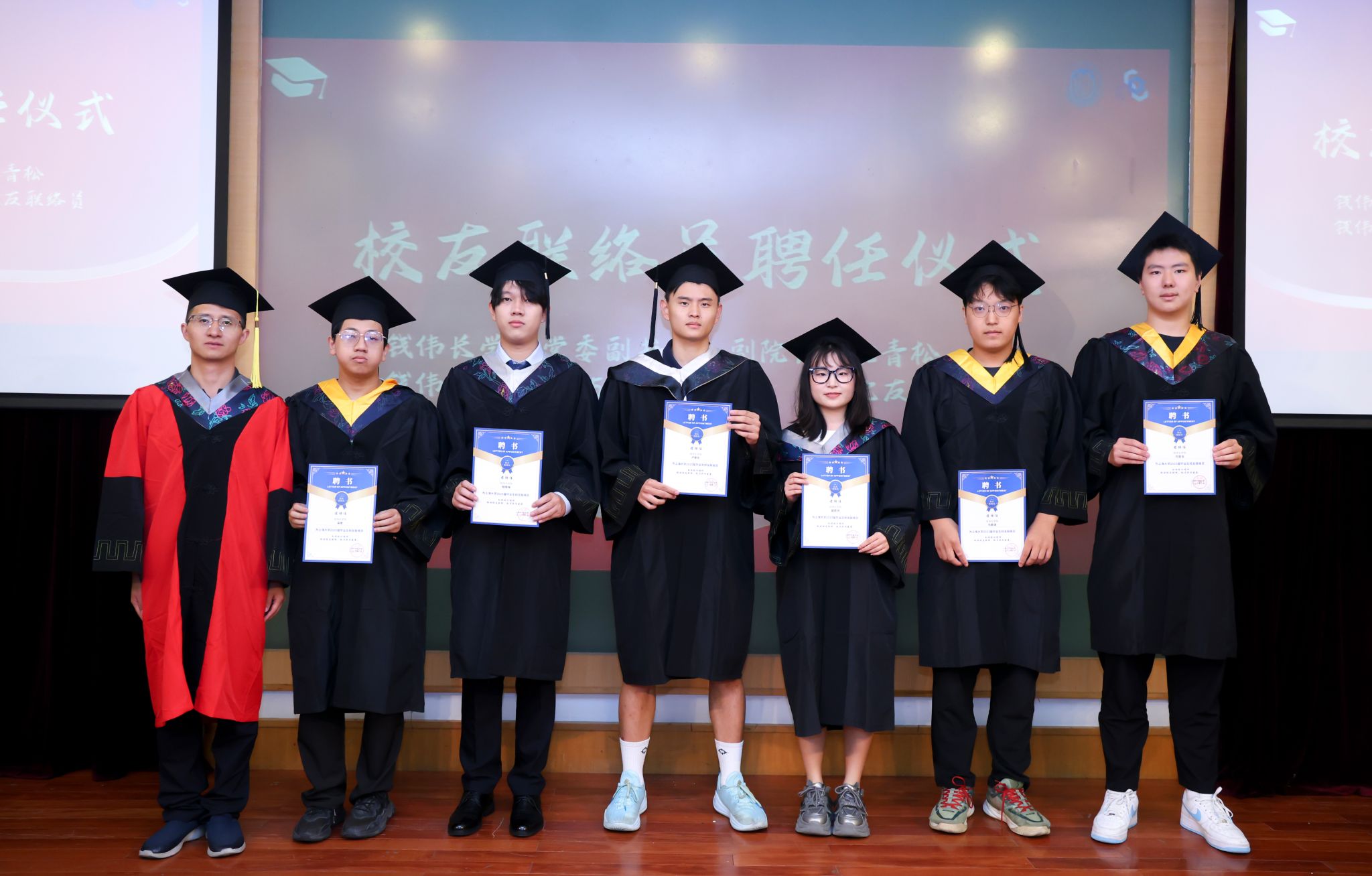 为保持母校与校友间的沟通与联系,典礼上,沈青松老师为盛若鸿、梁衡、马紫健、钱璟林、卢家乐、刘昱含等6名同学颁发了365完美体育校友联络员聘书,鼓励他们今后发挥好学校和校友之间的桥梁作用,讲好上大故事、传承伟长精神。