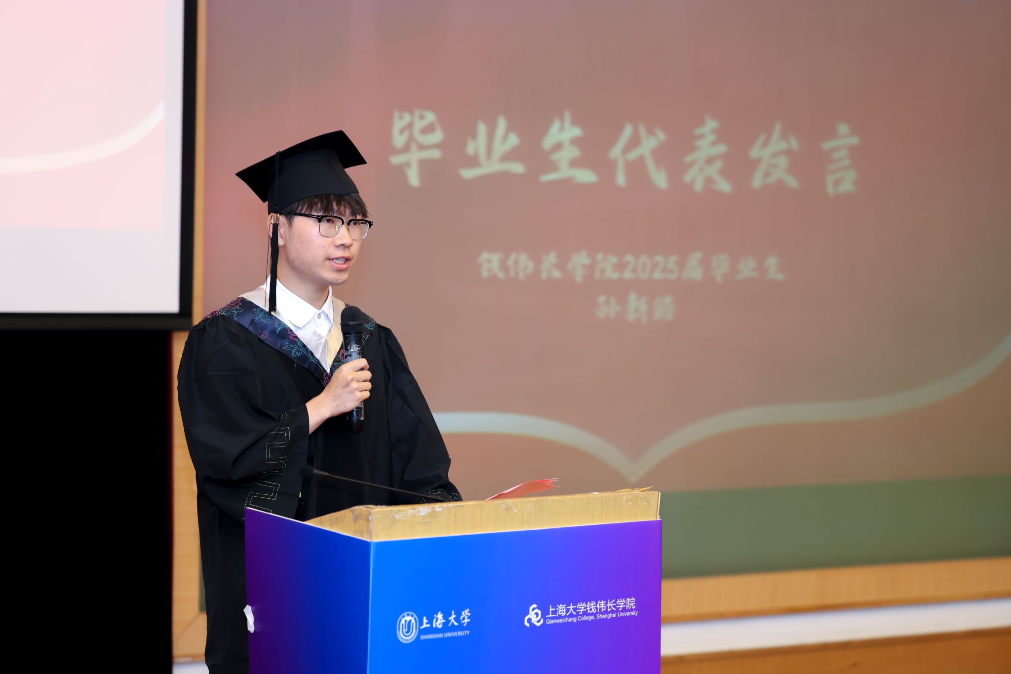 毕业生代表、2025年度365完美体育本科生校长奖学金获得者孙新皓同学分享了自己的成长感悟与心路历程,倡议同学们不要忘记一名伟长学子肩负的使命与担当,争做具有扎实基本功、全球视野的拔尖创新人才,未来争做从事基础科学研究的工作人员,争做新时代的领军人物!