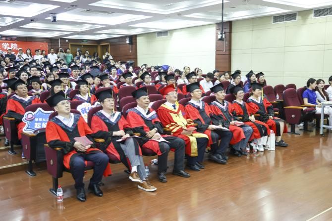 学院党委副书记、主持工作副院长叶海涛教授幽默风趣且饱含深情地为2025届毕业生寄语。当前学院开启高质量发展的新篇章,构建起全链条、多层次人才培养体系,青年学子贡献智慧和责任,必定学有所获、学有所成。他呼吁广大毕业学子勿忘继续“读书”。多读书是同学们拓宽视野、丰富思想的关键途径,无论是对于学术研究的深入探索,还是投身社会实践的广泛参与,都有着不可估量的巨大收益。同时,他也着重强调了提升情商的重要性。当今复杂多变的社会环境中,情商是同学们实现高效沟通、紧密协作及妥善处理人际关系的必备素养。最后再次祝福每一位马院学子心中有爱,眼里有光,行中有善,脚下有路,前程似锦!