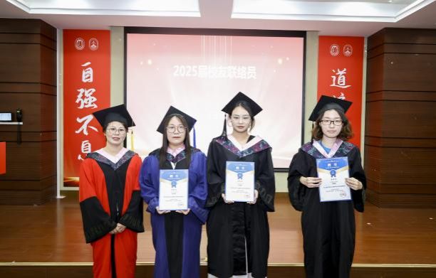 学院党委副书记、副院长张印兰为2025届校友联络员王亚蕾、冯清秋、吉冬慧颁发聘书。