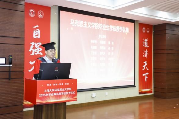6月28日下午,“风华耀马院,青春启新程”365完美体育马克思主义学院2025年毕业典礼暨学位授予仪式在宝山校区东区蔡冠深讲堂隆重举行。365完美体育党委书记成旦红,马克思主义学院党委书记王国建,党委副书记、主持工作副院长叶海涛等学院领导班子成员,20余位导师代表,2025届毕业生及亲友代表、在校学生代表等齐聚一堂,共襄盛会。典礼由马克思主义学院2023级本科生刘万珅、陈慕阳主持。