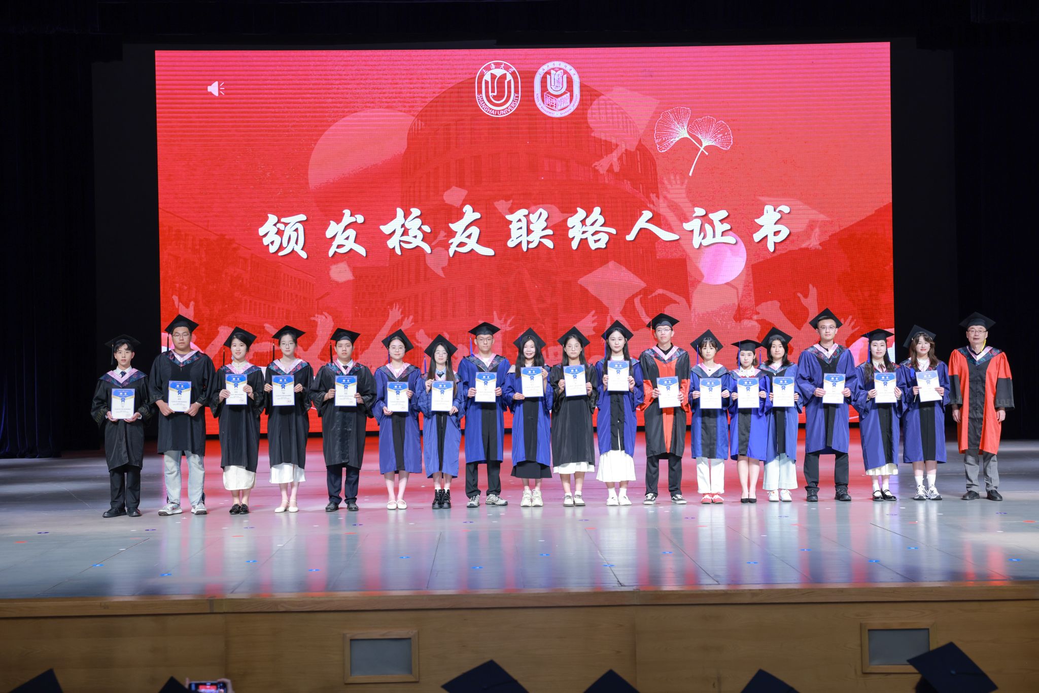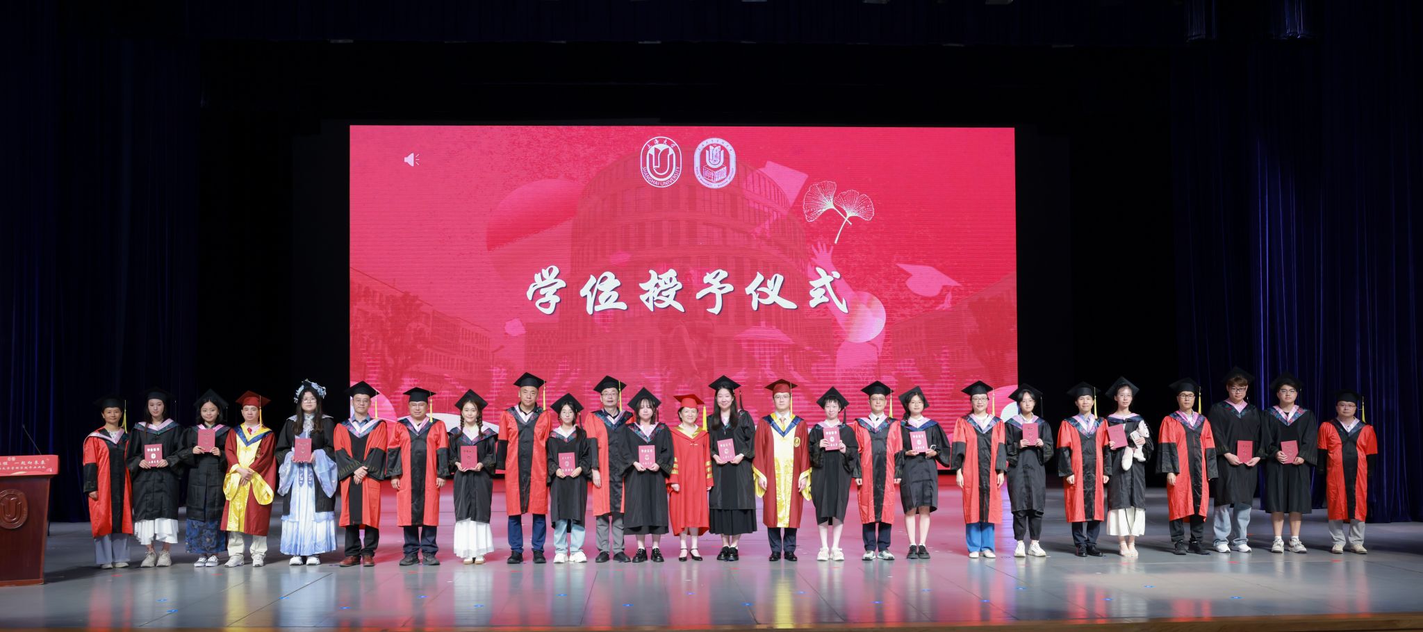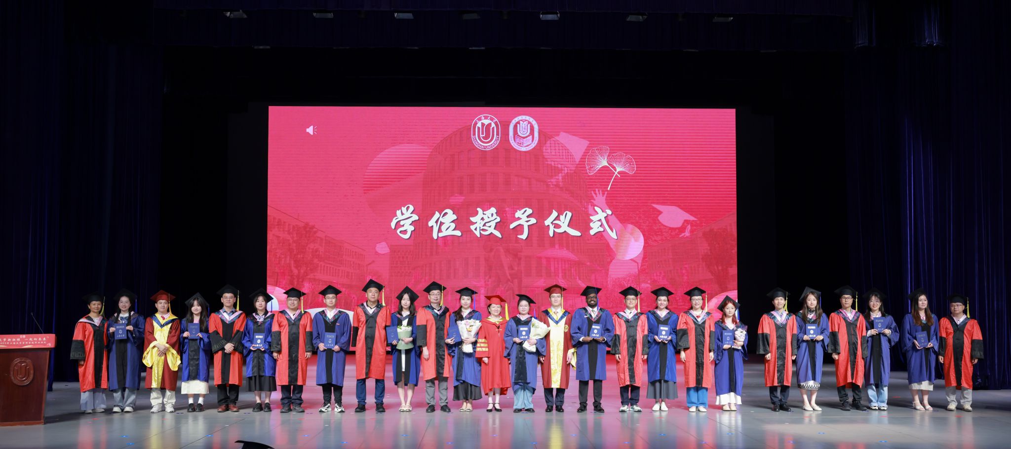 在庄严隆重的学位授予仪式环节,聂清副校长及学院党政领导、学位委员会成员代表、各系领导为毕业生们依次拨穗正冠,授予学位证书,并合影留念。毕业生们怀着紧张与激动,依次踏上台阶,大家与导师们并肩而立,快门声清脆响起,将这承载荣耀与期许的瞬间定格,见证知识殿堂向广阔天地的郑重交接,以及毕业生人生新征程的启航。
