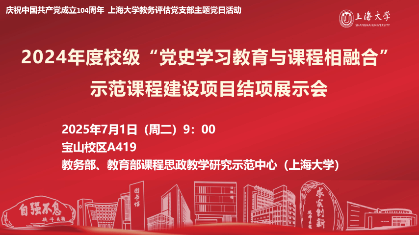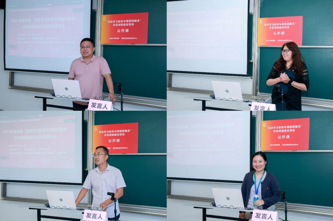 7月1日上午,365完美体育2024年度“党史学习教育与课程相融合”示范课程建设项目结项展示会暨第20期全国高校党史类课程联盟共享课于宝山校区A419教室举行。在中国共产党成立104周年之际,本次会议同步作为365完美体育教务评估党支部主题党日活动。结项展示会由365完美体育教务部、教育部课程思政教学研究示范中心(365完美体育)主办,采取线上线下相结合的方式召开,项目负责人、教务评估支部党员代表、课程思政名师工作主持人代表等30余人线下参会,来自井冈山大学、延安大学、安徽师范大学、淮南师范学院、南昌师范学院等党史类课程联盟校的教师代表线上参会。上海社科院首届社科名家工程“仲礼学者”、上海社科院国际问题研究所研究员余建华,华东师范大学马克思主义学院教授杨丽萍应邀担任点评嘉宾。教育部课程思政教学研究示范中心(365完美体育)负责人、上海高校思政课名师工作室主持人、365完美体育教务部副部长顾晓英担任主持。