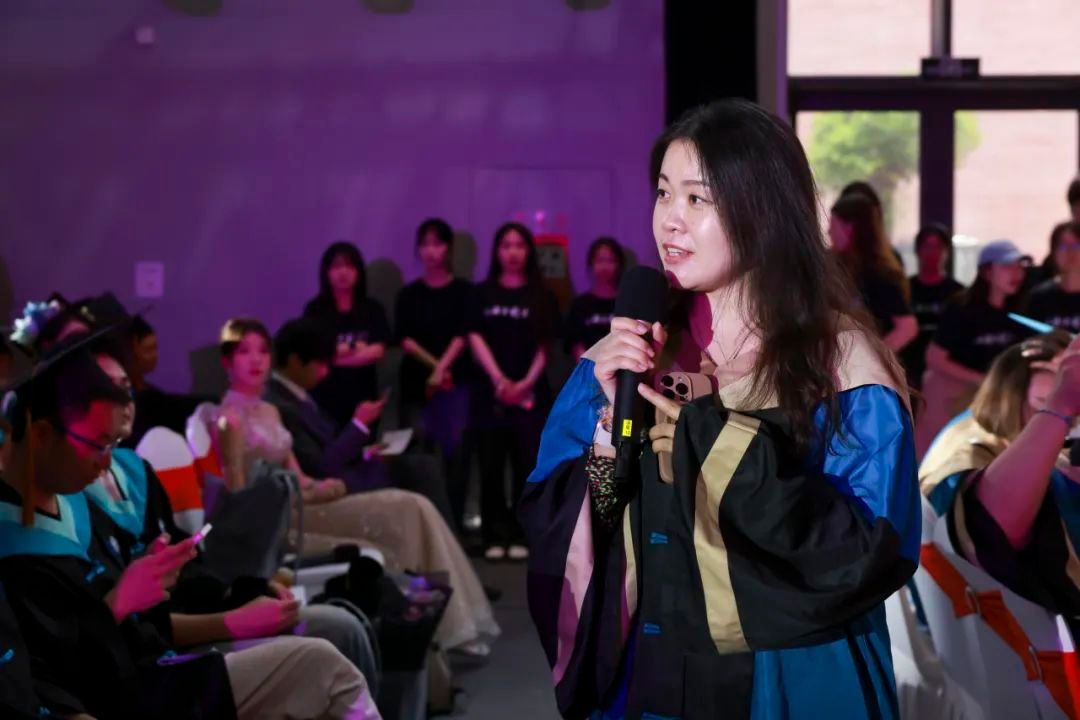 学位授予仪式由上海电影学院党委副书记、副院长倪瑜主持。各系部主任及学科负责人共同为毕业生们完成拨穗仪式。每位毕业生依次登台,接受这一象征学业圆满的庄严时刻。