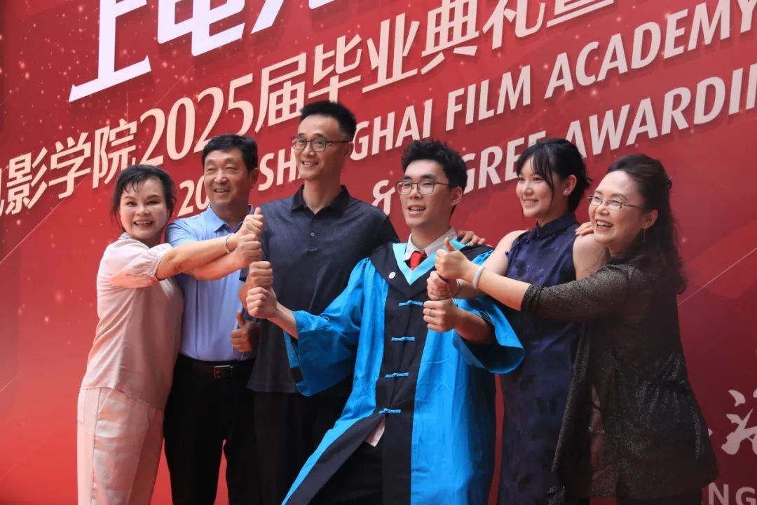 下午12:40,毕业红毯仪式正式开启。2025届毕业生们身着庄重的学位袍,踏上红毯,与挚亲、恩师和同窗留下珍贵的合影,凝结成“为电影未来齐聚于此”的郑重宣言。