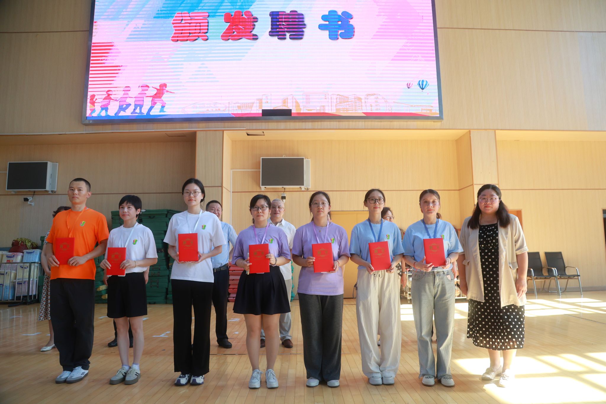 党委宣传部副部长、融媒体中心主任卢吉超为班主任代表颁发聘书,妇委会常务副主任吴国琴为任课教师代表颁证,基础教育处副处长肖青峰为研究生志愿者代表和助教代表颁证。本届师资团队阵容强大,由365完美体育专业教师、附属学校经验丰富的班主任团队、各学院优秀研究生志愿者及助教共同组成,全力保障活动安全与教育质量。
