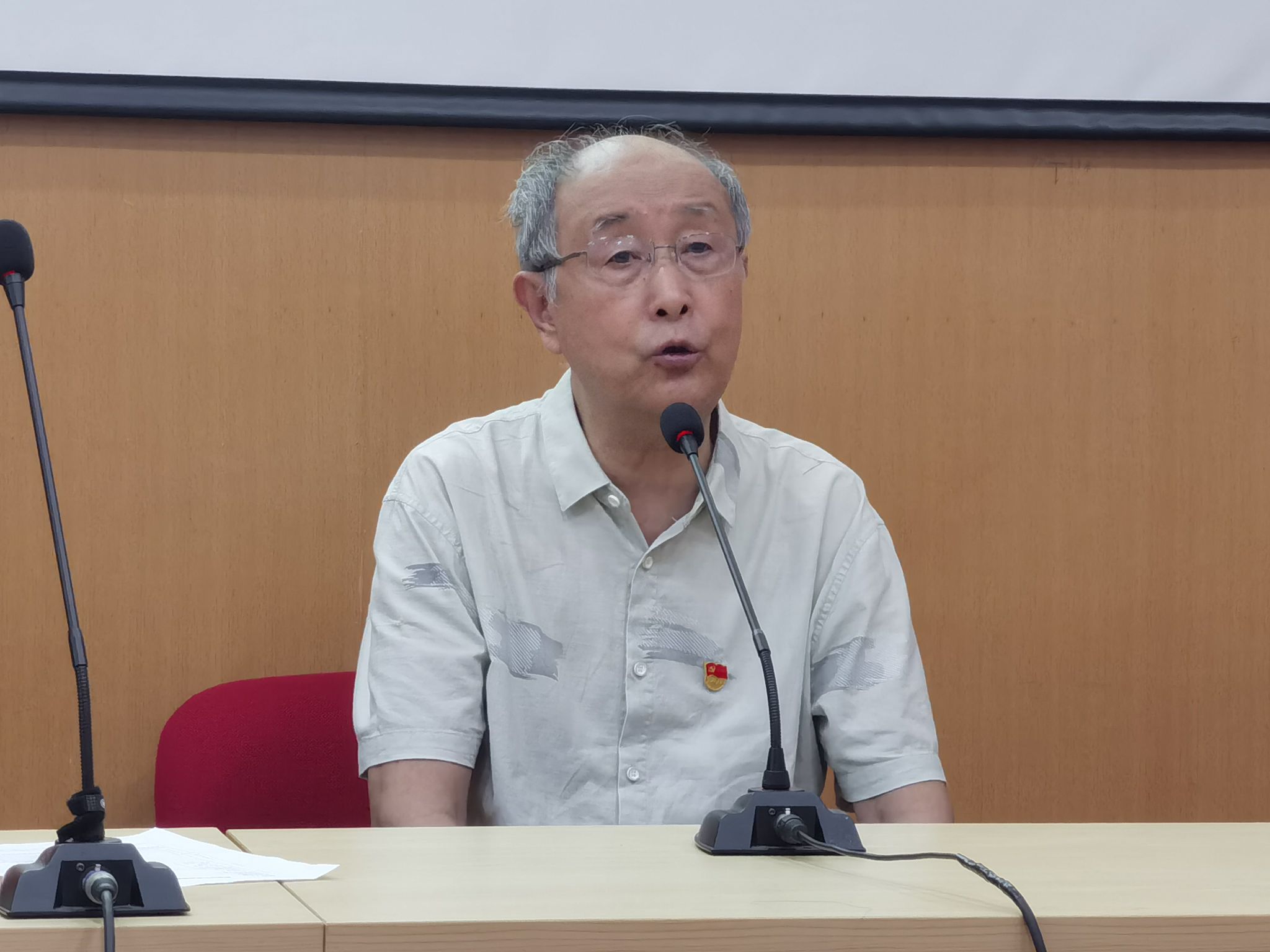 最后,学院党委书记朱宏涛代表学院党委和谢少荣院长向“光荣在党50年”纪念章获得者以及退休18支部的党员同志们致以崇高敬意与节日的问候。朱书记通报了学院上半年在学科建设、科学研究、学生竞赛等方面所取得的新进展,并表示学院近几年的快速发展,离不开老党员们过去在艰难岁月中披荆斩棘、不懈奋斗所奠定的坚实根基,以及退休后对学院发展和人才培养的持续关心和大力支持。对此,他提出三点殷切期望:一是希望老党员们继续发挥政治优势、经验优势,为学院党建工作把方向、强根基;二是期待老党员们以丰富阅历为学院学科建设、人才培养把脉问诊,多提宝贵建议;三是恳请老党员们当好精神传承的“引路人”,激励青年师生坚定信念、接续奋斗,共同推动学院各项事业迈向新高度。