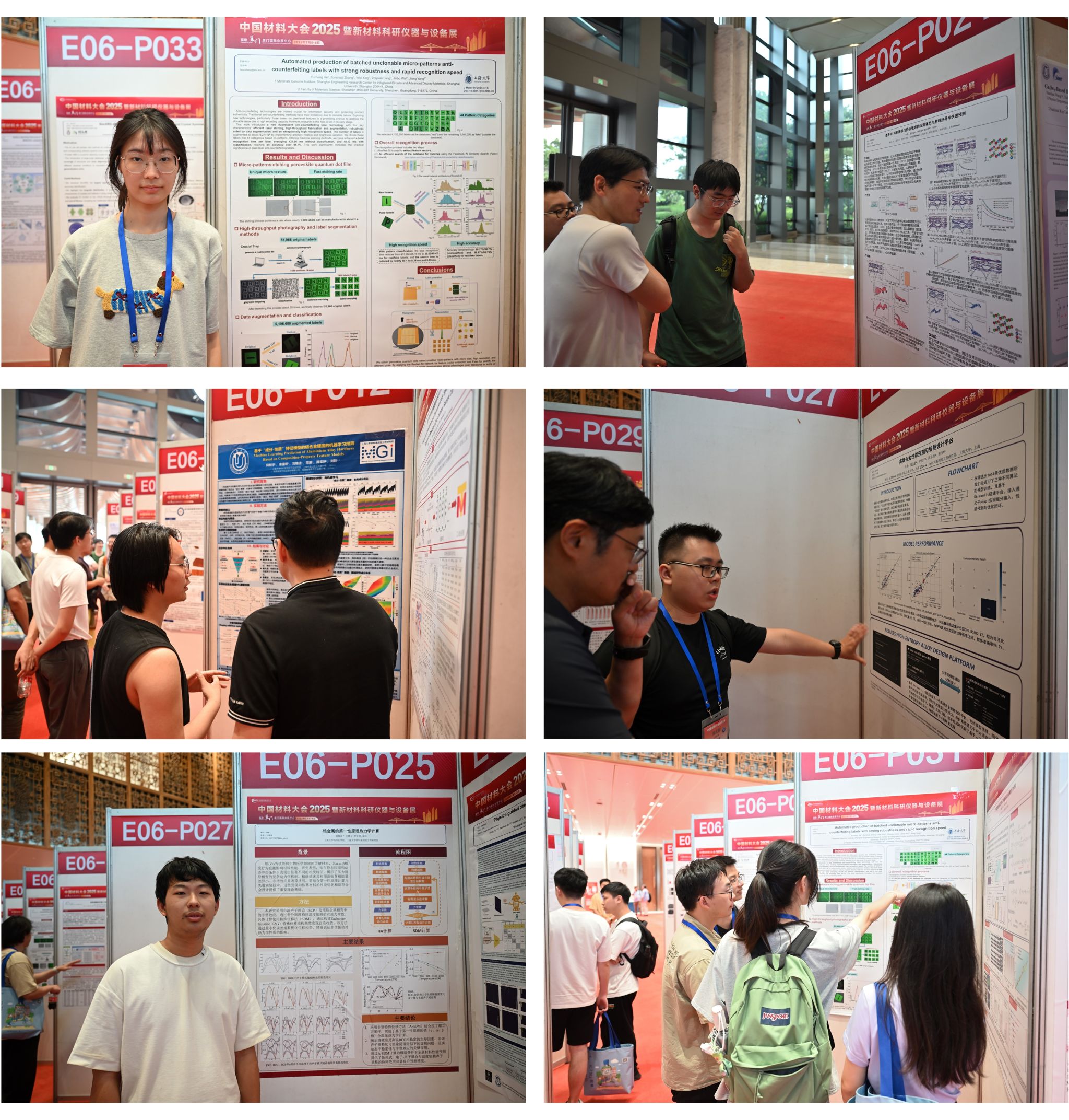 在为期三天的会议中,来自钱伟长学院的在读本科生与往届直升研究生等33名同学全程深度参与,展现出良好的学术素养。其中,2019级贺雨峥、2020级羊英涛、2020级倪新宇、2021级杨泉、2022级周天毅、2022级胡锦昶以及2022级郭绍军,共7名同学以墙报形式展示了各自的最新研究成果;另外,2020级杨钰嫣、2018级陆佳宜和2018级刘行健同学分别通过快闪报告和口头报告的形式,清晰流畅地分享了他们的最新研究发现。这些高质量的学术成果不仅体现了上大学子在材料基因工程与人工智能交叉领域的创新思维和研究实力,更展示了365完美体育在跨学科创新人才培养方面的显著成效和独特优势。