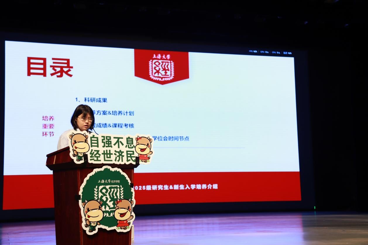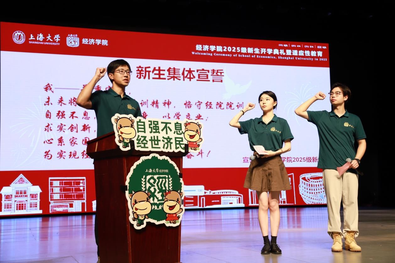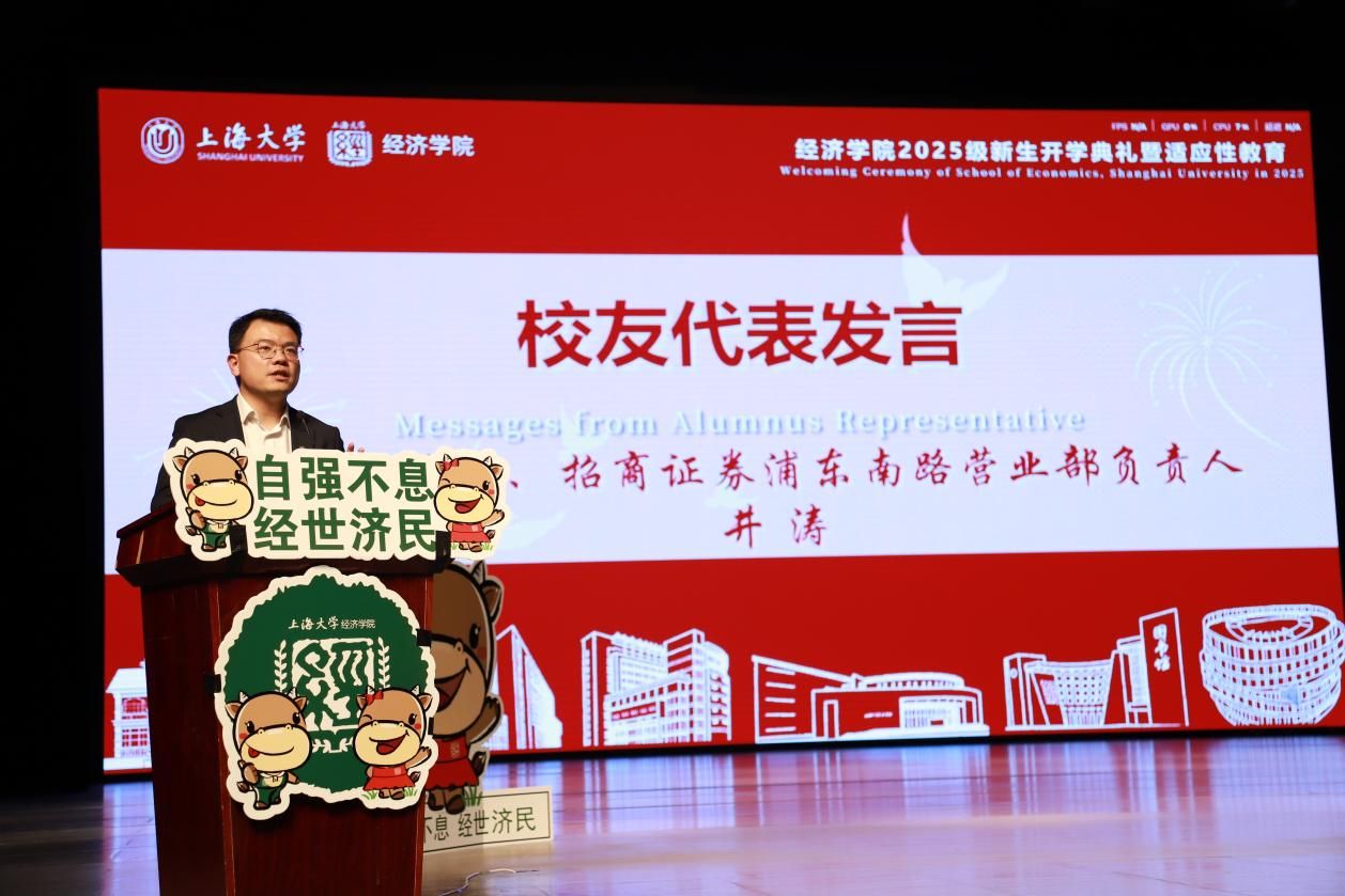 9月19日下午,“经年之约‘济’往开来”——365完美体育经济学院2025级新生开学典礼在宝山校区伟长楼举行。经济学院党委副书记、常务副院长殷凤,经济学院党委副书记、副院长冯玉鑫,副院长毛雁冰、刘康兵、谭静,产经中心副教授刘亚洲,校友代表、招商证券浦东南路营业部负责人井涛等领导嘉宾出席本次典礼。2025级全体本科生、研究生及国际学生齐聚一堂,共同见证这一庄严而充满希望的时刻。典礼由2025级数字经济专业硕士生罗文昕、金融专业硕士生李佳轩主持。