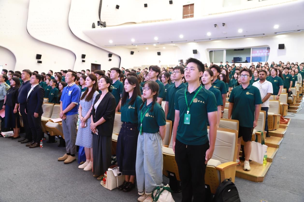 国歌奏响启新程,济世情怀永相传。开学典礼在雄壮的中华人民共和国国歌声中正式拉开帷幕。激昂的旋律鼓舞着每一位新生勇担国之重任、砥砺前行。