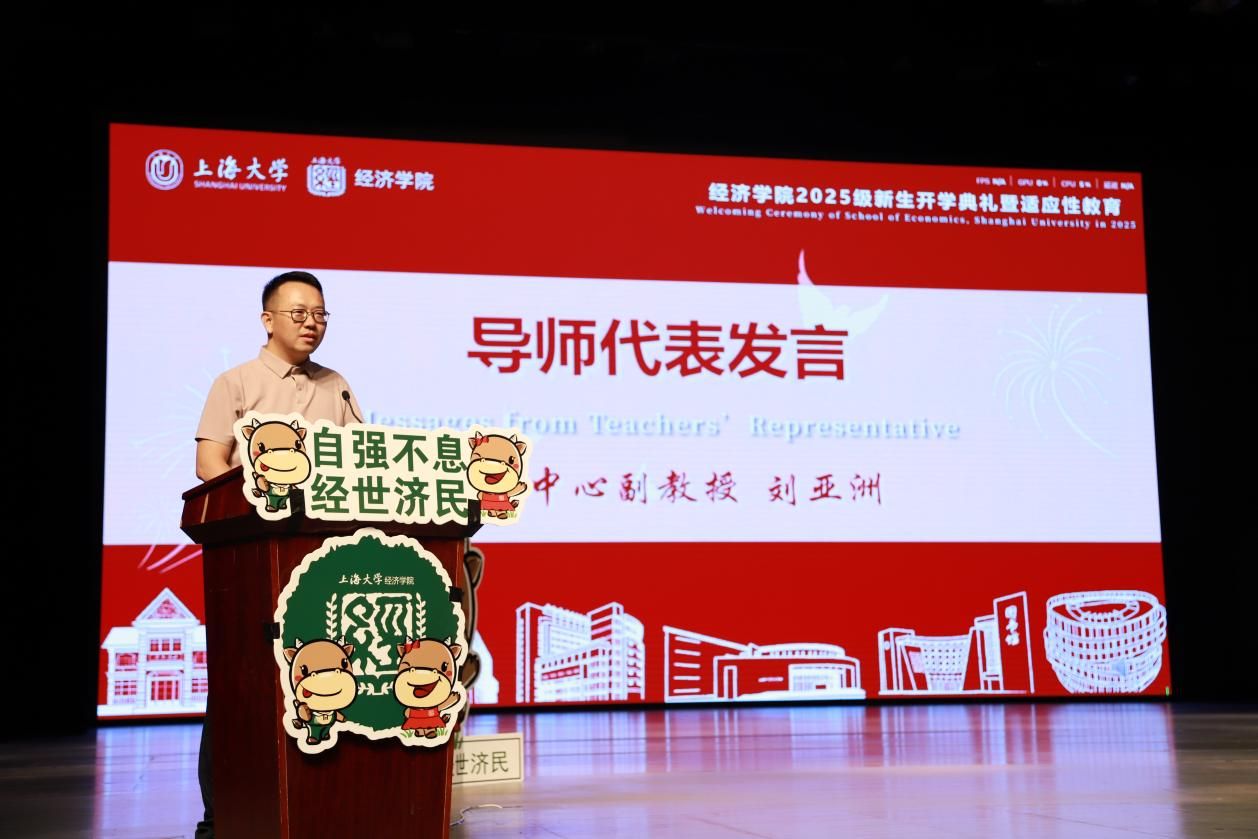 随后,导师代表、产业经济中心副教授刘亚洲发言。他表示,大学校园贵在它的自由度、包容性和长久韧性,经济学子应充分利用学校提供的资源平台主动,培养批判性思维和创新能力,在未来学习生涯中努力前行,不负韶华。