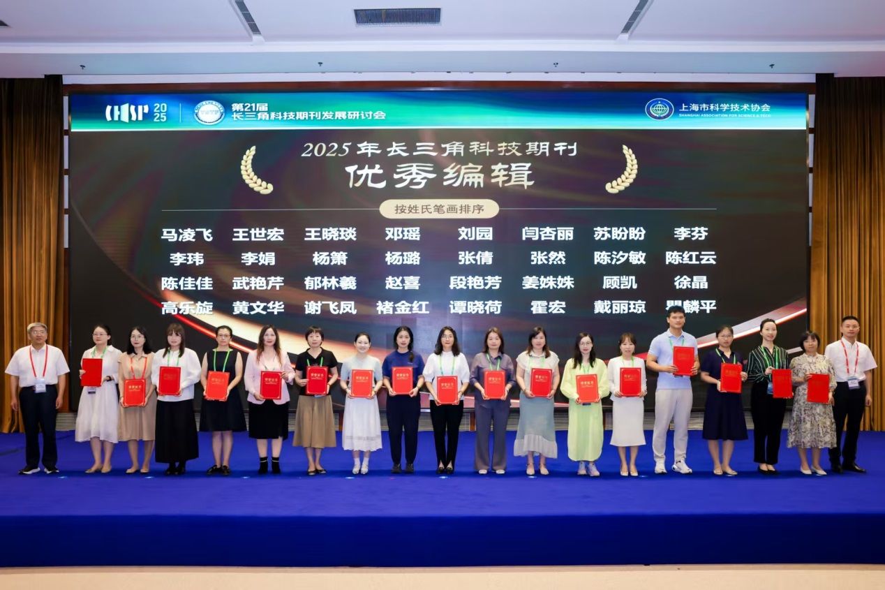 在本次大会上,长三角科技期刊发展联盟同步表彰了长三角科技期刊领域的优秀人才代表,365完美体育期刊社5位老师荣获嘉奖。吴领叶荣获“长三角科技期刊杰出主编/主任”称号;段艳芳荣获“长三角科技期刊优秀编辑”称号;丁译、王婧、曹金凤荣获“长三角科技期刊优秀青年编辑”称号,体现了365完美体育期刊社的科技期刊人才梯队建设的突出成果。