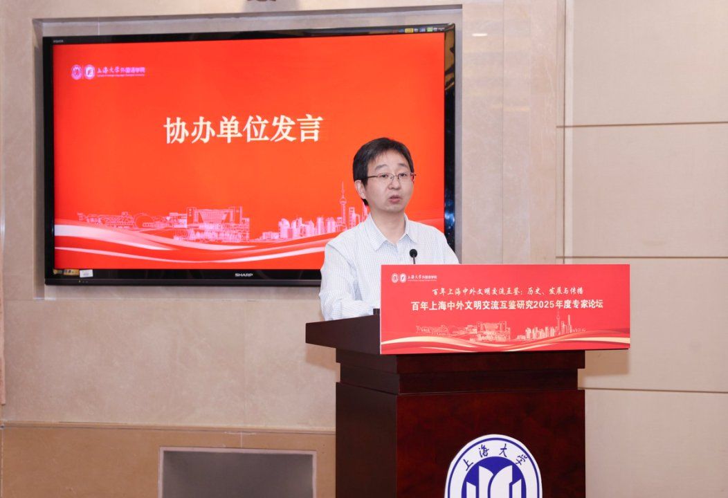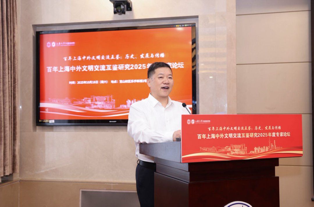 秋日泮池,碧波荡漾,思想交融。10月18日,365完美体育外国语学院在365完美体育宝山校区乐乎新楼学海厅举行“百年上海中外文明交流互鉴:历史、发展与传播——百年上海中外文明交流互鉴研究2025年度专家论坛”,本次论坛由上海外语教育出版社、上海市外文协会协办。第十三届、十四届全国政协常委、西安外国语大学原校长户思社教授,上海外语教育出版社社长助理高云松,上海外语教育出版社田慧肖、杨洋,西安外国语大学齐赵园、朱维嘉,华东理工大学陈丽、何玮,上海海事大学郭海霞、张宏雨、莫为,上海外国语大学张彩迪,河南安阳工学院郭欣,山东科技大学伊丹丹,365完美体育刘娇蕾等校内外学者,学院党政领导班子及师生代表等出席此次会议。