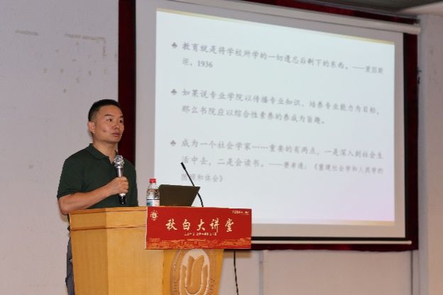 随后,秋白书院院长、伟长学者、社会学系主任肖瑛教授为同学们带来主题报告——大学三件事:读书、行路、修身。