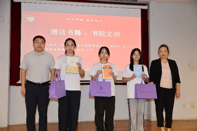 法学院党委副书记于伟、社会学院党委副书记张乃琴在现场为学生代表赠送贴近专业特点的书籍及书院文创,以期传承秋白书院“红色传承、经典阅读、实践育人”的突出特色。在求学之路上有经典相伴,相信同学们的路会走得更加充实和顺利。