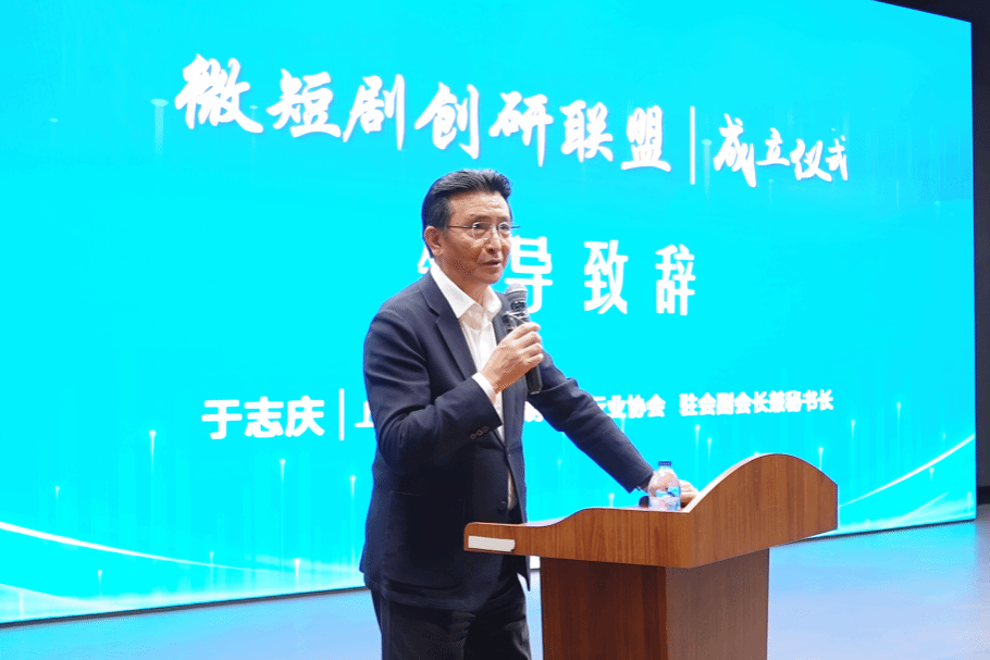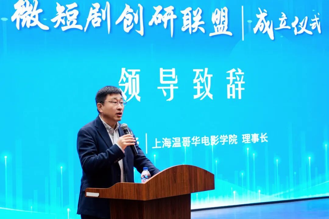 上海市广播影视制作业行业协会驻会副会长兼秘书长于志庆在致辞中高度评价了温影在电影教育领域取得的成就。他表示,温影始终站在影视教育创新的前沿,此次发起成立微短剧创研联盟再一次体现了学院的前瞻性。于志庆副会长郑重承诺,协会将充分调动行业资源,全力支持联盟建设,共同推动上海微短剧产业生态的完善和发展。