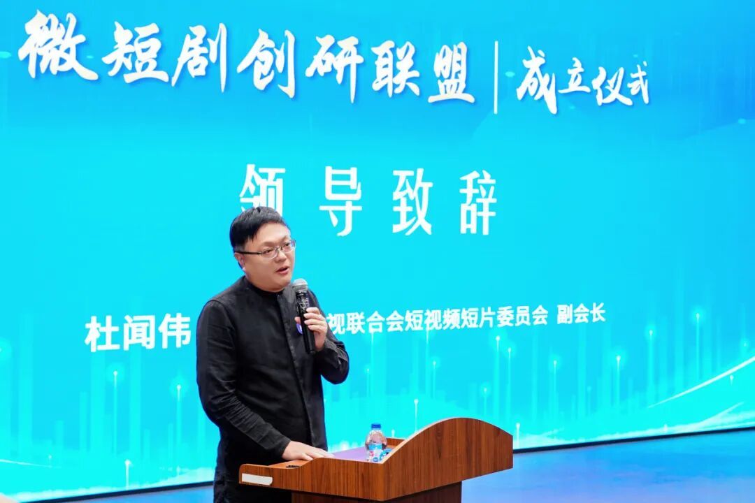 中国广播电视社会组织联合会短视频短片委员会副会长杜闻伟在祝贺联盟成立的同时,详细分享了委员会在短剧领域进行的探索和实践经验。他深入剖析了当前微短剧行业在版权保护、内容审核等方面面临的挑战,并提出了建设性的解决方案。杜闻伟副会长特别建议联盟在未来的工作中重点关注两个方向:一是短剧出海,助力中国微短剧走向国际市场;二是AI短剧,探索人工智能技术在微短剧创作中的应用前景。