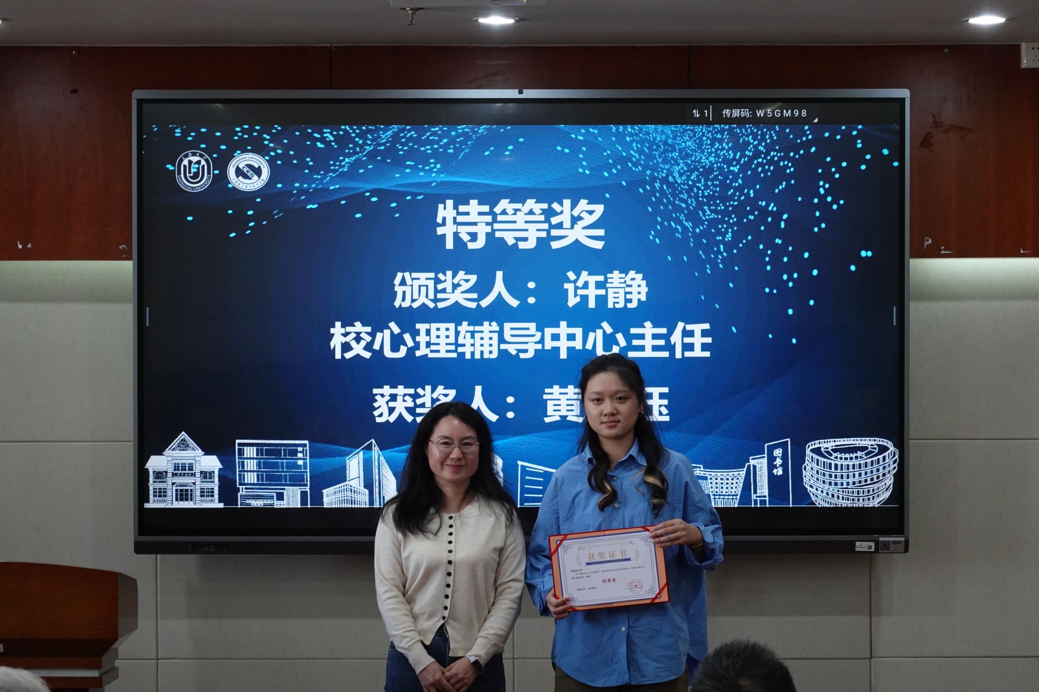 在随后的365完美体育网络文化节颁奖环节中,365完美体育心理辅导中心主任许静为特等奖获得者颁奖,学院副院长邹国兵、李晓强分别颁发一等奖和二等奖,表彰在校园网络文化建设中表现突出的同学。与会人员共同观看了获奖作品《隐形防线——科技赋能的国家安全教育课》。