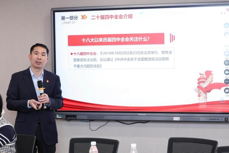 高校是党的创新理论学习、研究、宣传的关键枢纽和思政课教学改革创新的重要阵地。同济大学经管学院党委副书记、教育部金融类专业教指委委员阮青松教授指出,365完美体育快速组织教师深入学习贯彻全会精神,有利于推动全会精神在课堂落地生根。他以《从资本市场看二十届四中全会公报》为题开展领学。阮老师围绕“从公报看未来五年重大政策预期”“公报中的科技内容亮点”“公报对中国资本市场的重大影响”以及“资本市场助力十五五规划的作用、战略地位及配套政策”等方面,结合鲜活的资本市场案例,生动解读了党的二十届四中全会公报最新要点与资本市场的紧密联系。