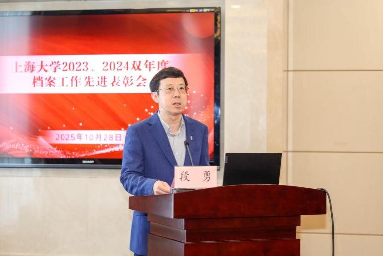 在档案工作先进表彰会上,校党委副书记段勇在致辞中向受表彰的集体与个人表示热烈祝贺,并向全校档案工作者致以亲切问候,希望本次受到表彰的集体和个人珍惜荣誉,再接再厉,在今后的工作中继续发挥模范带头作用,也希望全校档案工作者以先进为榜样,见贤思齐,不断提升业务能力和服务水平,共同推动我校档案事业再上新台阶。