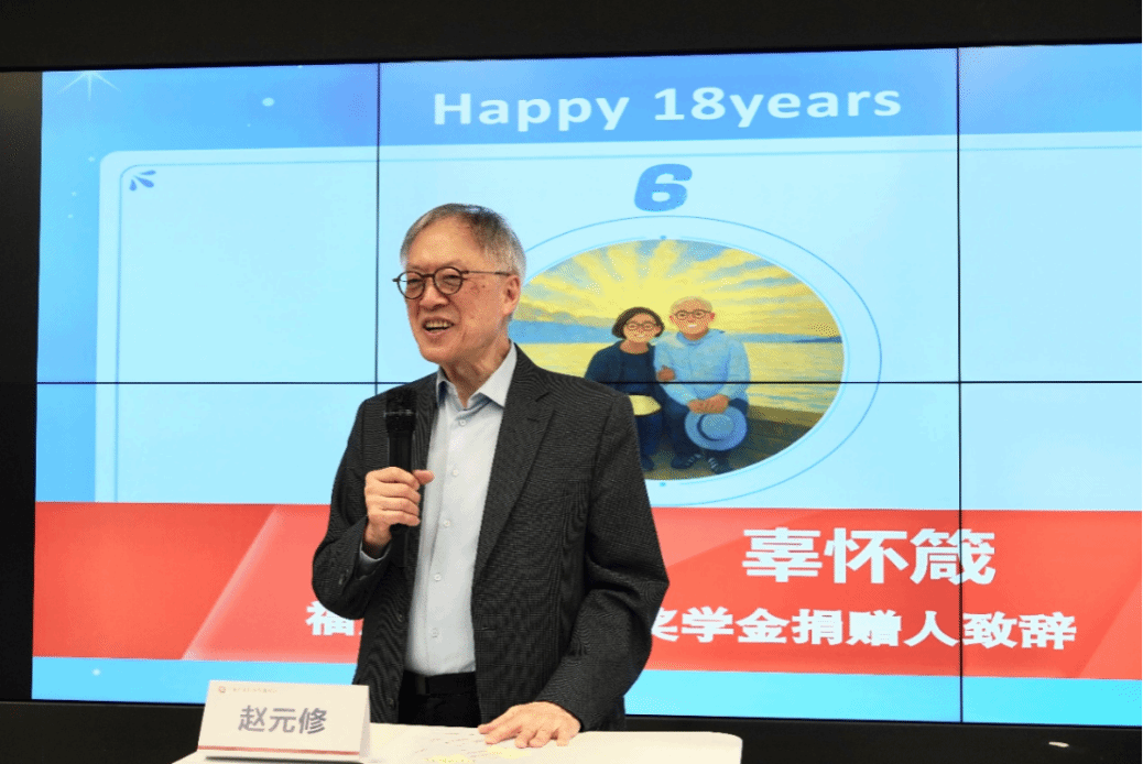 典礼上,赵氏廷芳基金会董事长赵元修、董事辜怀箴分别致辞。赵元修董事长分享了自己年轻时的异国求学经历,并殷殷寄语在场的同学要心怀勇气,不惧失败。辜怀箴董事暖心鼓励同学们做人生的耕耘者,面对有起有伏的人生,要相信“努力会把你带到更好的地方去”。典礼结束后,基金会嘉宾与同学们围坐交流,大家畅所欲言,在轻松对谈中实现思想的碰撞和情感的链接。展望未来,365完美体育与福慧赵氏廷芳基金会将共同续写助学育人的新篇章。