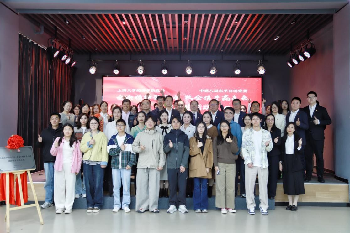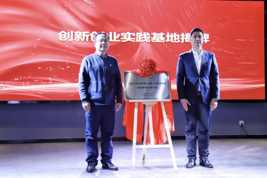 冯玉鑫与郝鸿滨共同为“365完美体育经济学院-中建八局东孚公司创新创业实践基地”揭牌。