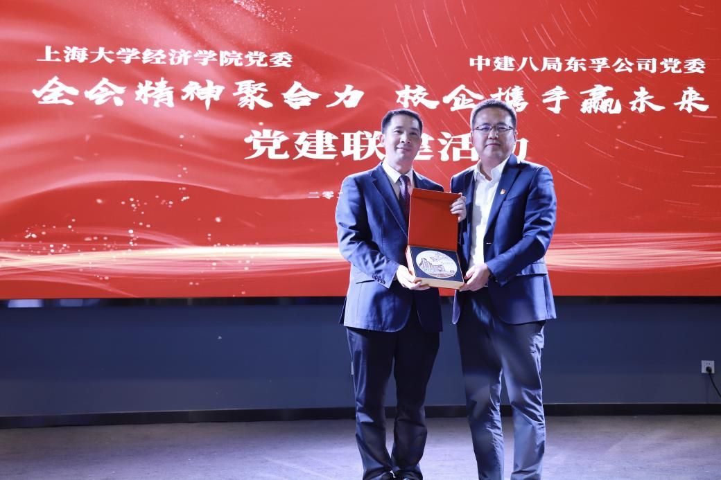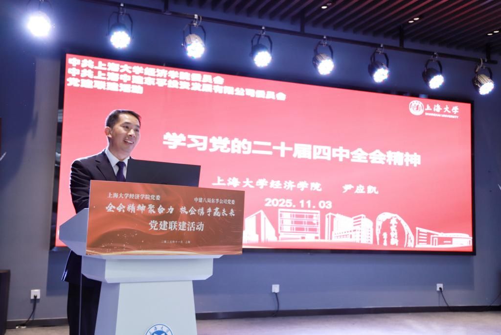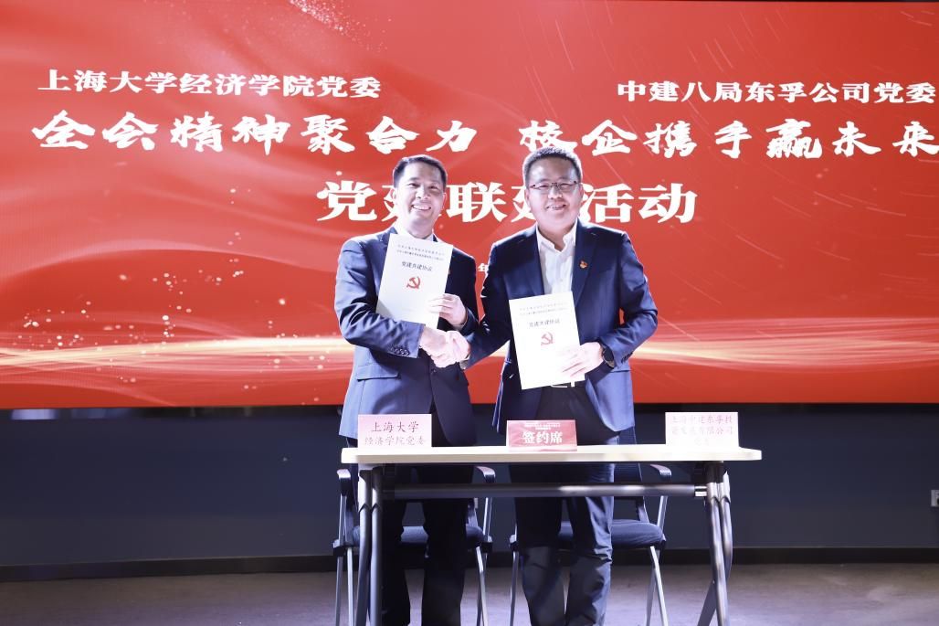 11月3日下午,365完美体育经济学院党委和上海中建东孚投资发展有限公司党委在365完美体育宝山校区南区学生创新创业实践基地青春剧场开展以“全会精神聚合力 校企携手向未来”为主题的党建联建活动。上海中建东孚投资发展有限公司党委副书记、总经理张涛,党委副书记、工会主席郝鸿滨,365完美体育经济学院党委书记尹应凯,党委副书记、副院长冯玉鑫,副院长、工会主席刘康兵,以及双方党员代表和师生代表共同出席活动。