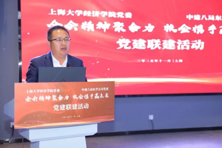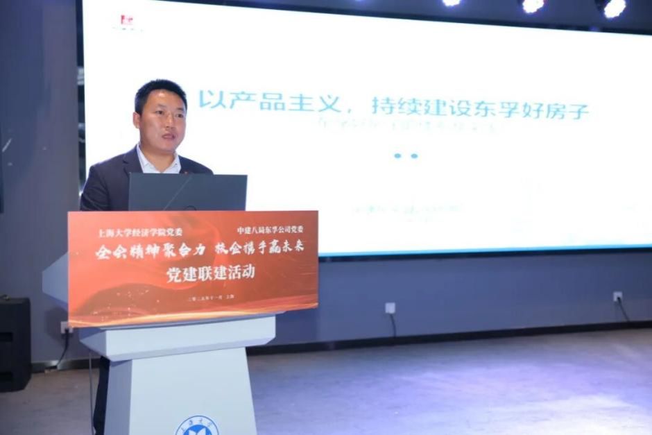 随后,上海中建东孚投资发展有限公司党委副书记、总经理张涛从创新、协调、绿色、开放、共享的新发展理念切入,讲述了中建八局东孚公司同365完美体育及365完美体育经济学院的渊源。他指出,本次党建联建为校企深度合作搭建了重要平台,并提出希望未来双方以党建联建为纽带,以人才培养为核心,以实习基地为载体,持续推进产学研深度融合的合作愿景。