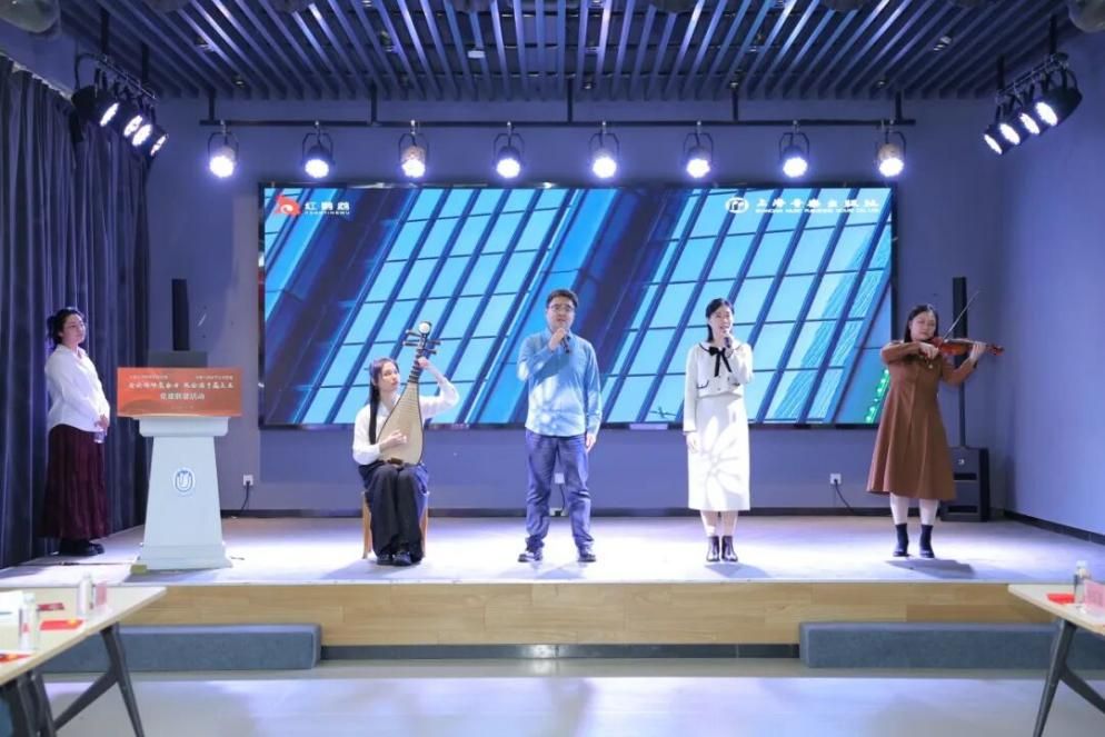 活动伊始,由上海音乐出版社“红鹦鹉”党建品牌团队主讲音乐党课《穿越烽火的旋律》,以历史讲述、视频展示、乐器演奏、现场演唱、舞蹈表演等多元形式生动演绎了《长城谣》《思乡曲》《保卫黄河》等诞生于中国人民抗日战争暨世界反法西斯战争期间的优秀音乐作品,带领大家共同回溯了那段浴血奋战的峥嵘岁月。