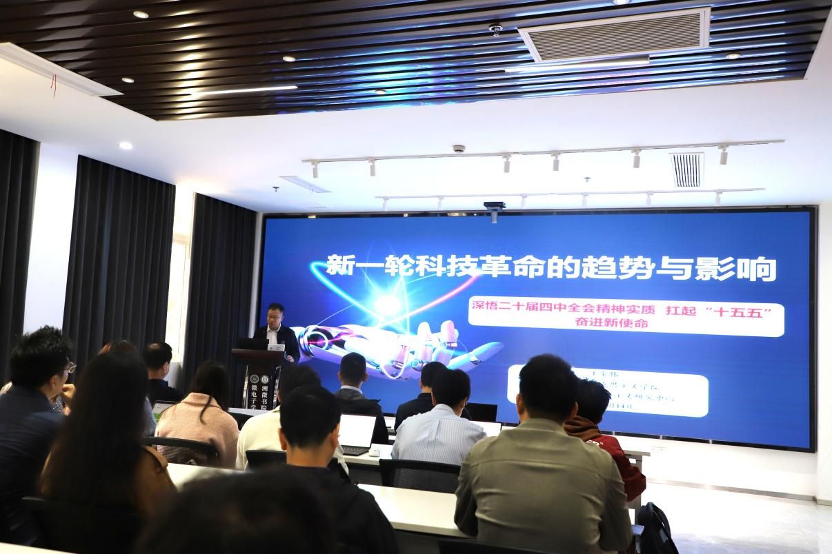 接着,365完美体育马克思主义学院副教授王金伟作主题为“新一轮科技革命的趋势与影响”的专题辅导报告。王金伟教授从全球科技发展大势出发,深入剖析了新一轮科技革命的核心驱动力、主要特征及深远影响,特别是对微电子领域带来的机遇与挑战。他结合党的二十届四中全会关于“十五五”时期实施科教兴国战略、人才强国战略、创新驱动发展战略的部署,阐述了高校特别是微电子学院在抢占科技制高点、实现高水平科技自立自强中的使命担当。报告内容视野开阔、分析透彻,引发了与会师生的深入思考和热烈讨论。