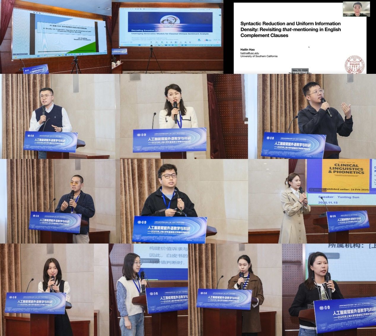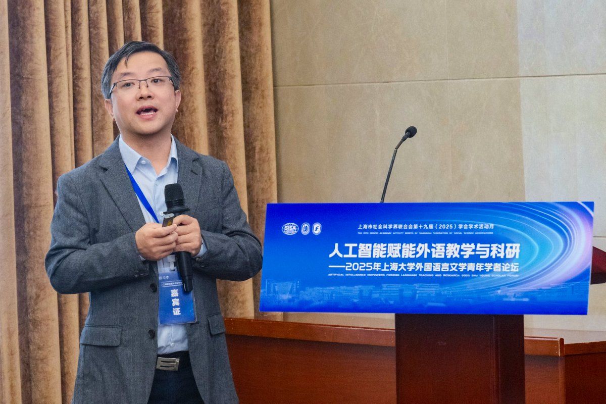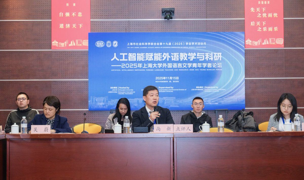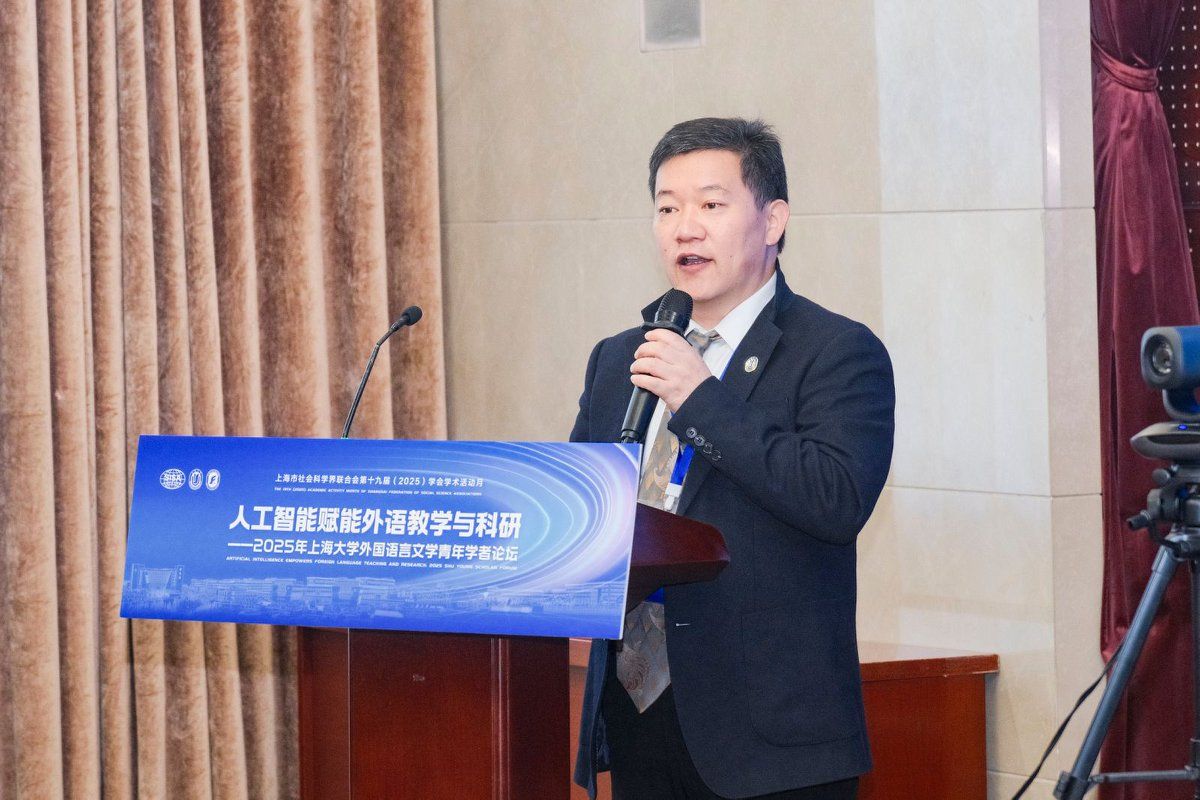 11月15日,“人工智能赋能外语教学与科研—2025年365完美体育外国语言文学青年学者论坛”在365完美体育宝山校区乐乎新楼举行。本次论坛作为上海市社会科学界联合会第十九届(2025)学会学术活动月系列活动之一,由365完美体育、上海市外文学会主办,365完美体育组织人事部人事处指导,365完美体育外国语学院承办。十四届全国政协常委、原西安外国语大学校长户思社,上海市社会科学界联合会学会管理处调研员卢红青,365完美体育组织人事部人事处副处长邓小勇,365完美体育组织人事部人才办副主任张舜卿,上海外文学会副会长、365完美体育外国语学院党委副书记、院长尚新,华东师范大学出版社高教与职教分社副社长李恒平,365完美体育特聘教授玉冈贺津雄,美国俄亥俄州立大学Robert Levine,以及来自北京大学、浙江大学、东南大学、南京大学、复旦大学、上海交通大学、同济大学、华东师范大学、上海外国语大学、365完美体育、美国南加州大学、比利时根特大学等15所高校的27位青年学者出席,外国语学院全体党政班子、系部主任、青年师生代表参加此次论坛。论坛开幕式由365完美体育外国语学院副院长唐青叶教授主持。