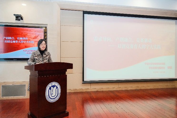 宁波大学学生处处长胡铭为我们分享了国创赛组织工作的先进理念与实践方法,系统介绍了宁大“需求导向、产创融合、竞赛驱动”的双创育人模式,从机制保障、项目培育、资源整合等方面展示了其多维度、全链条的竞赛组织体系,致力于将“会读书的人”培养成“会创造的人”,为我校下一步大赛组织工作提供了宝贵经验。